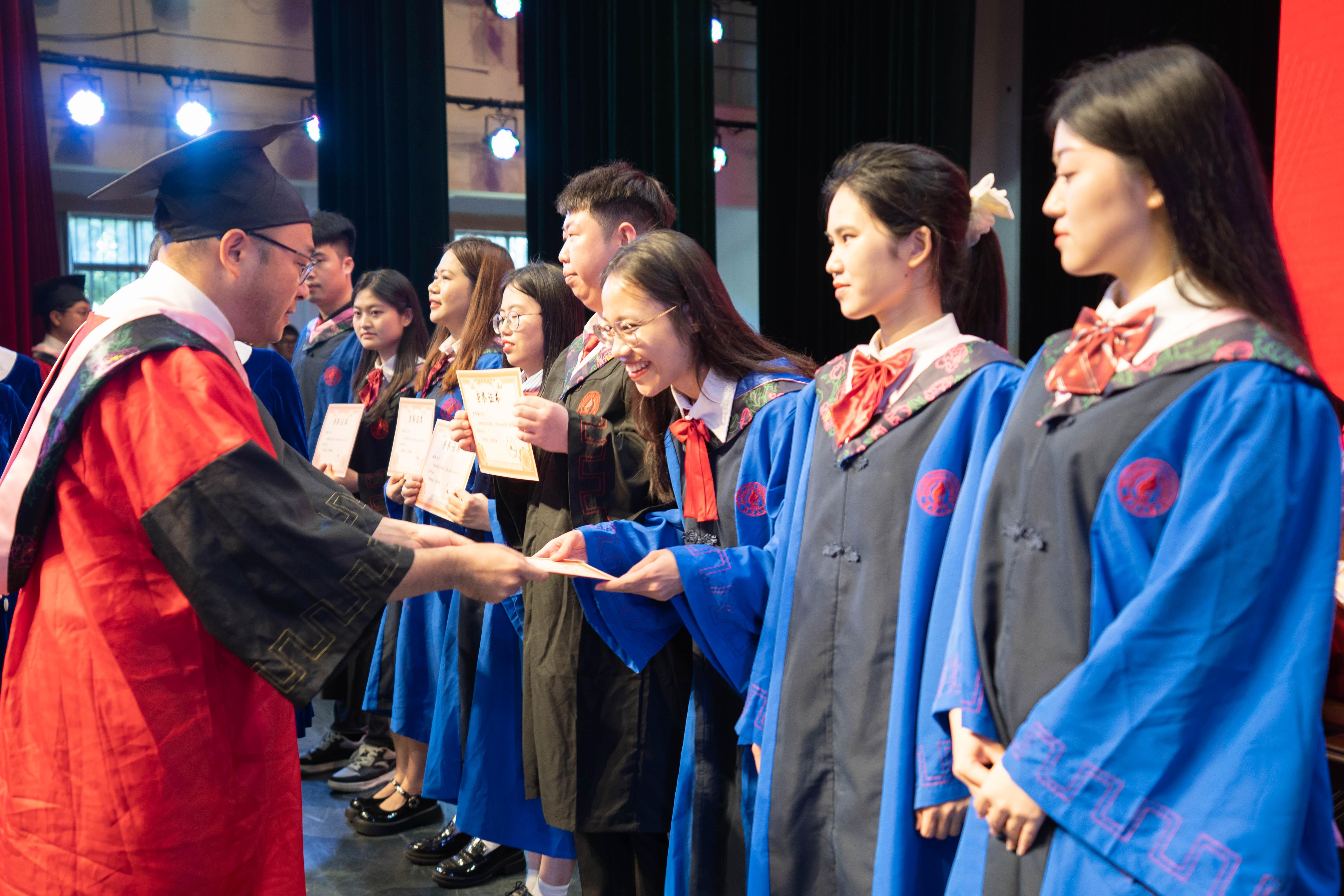 朱帮助院长为毕业生颁授证书、拨穗正冠