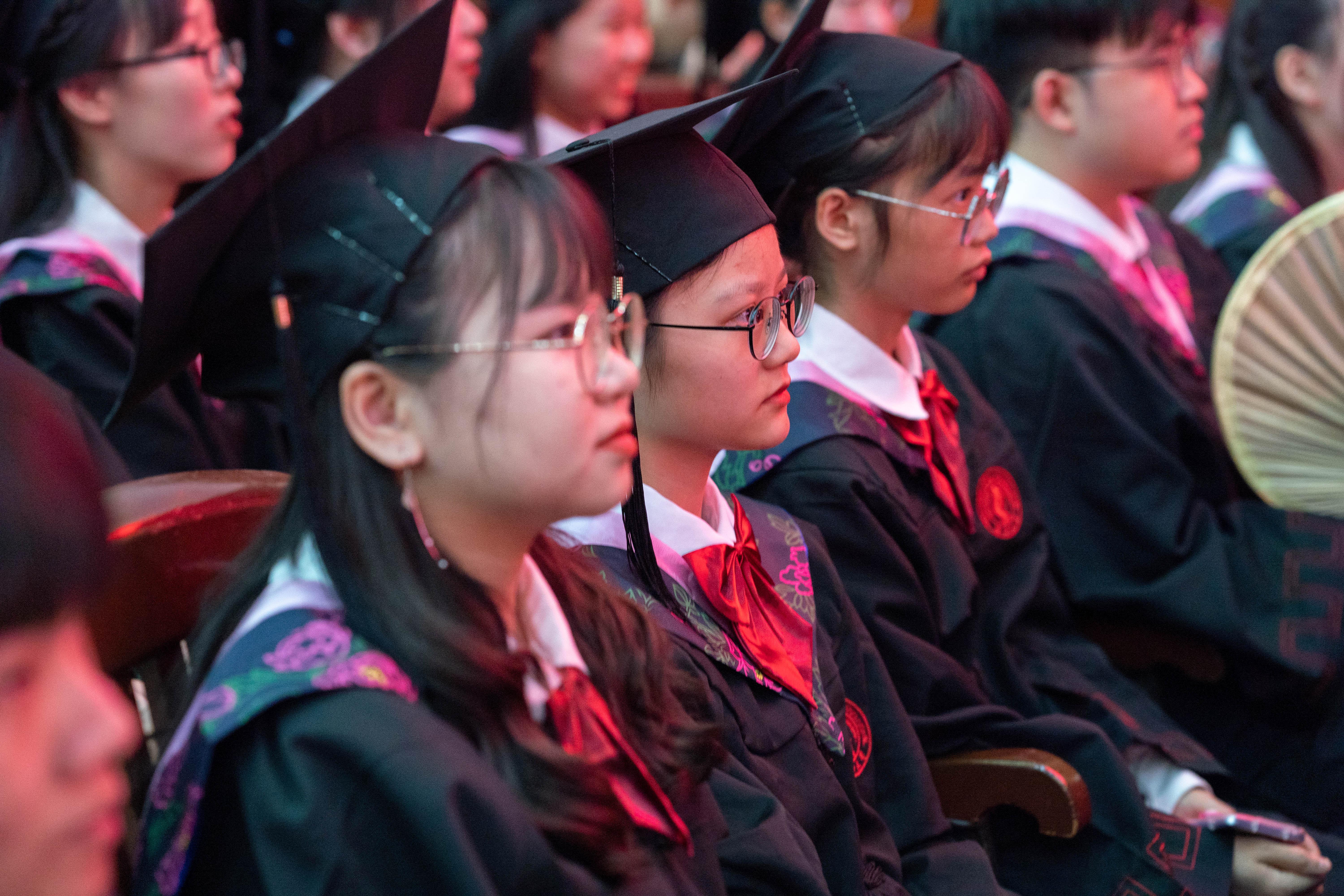 毕业生们认真聆听师长教诲