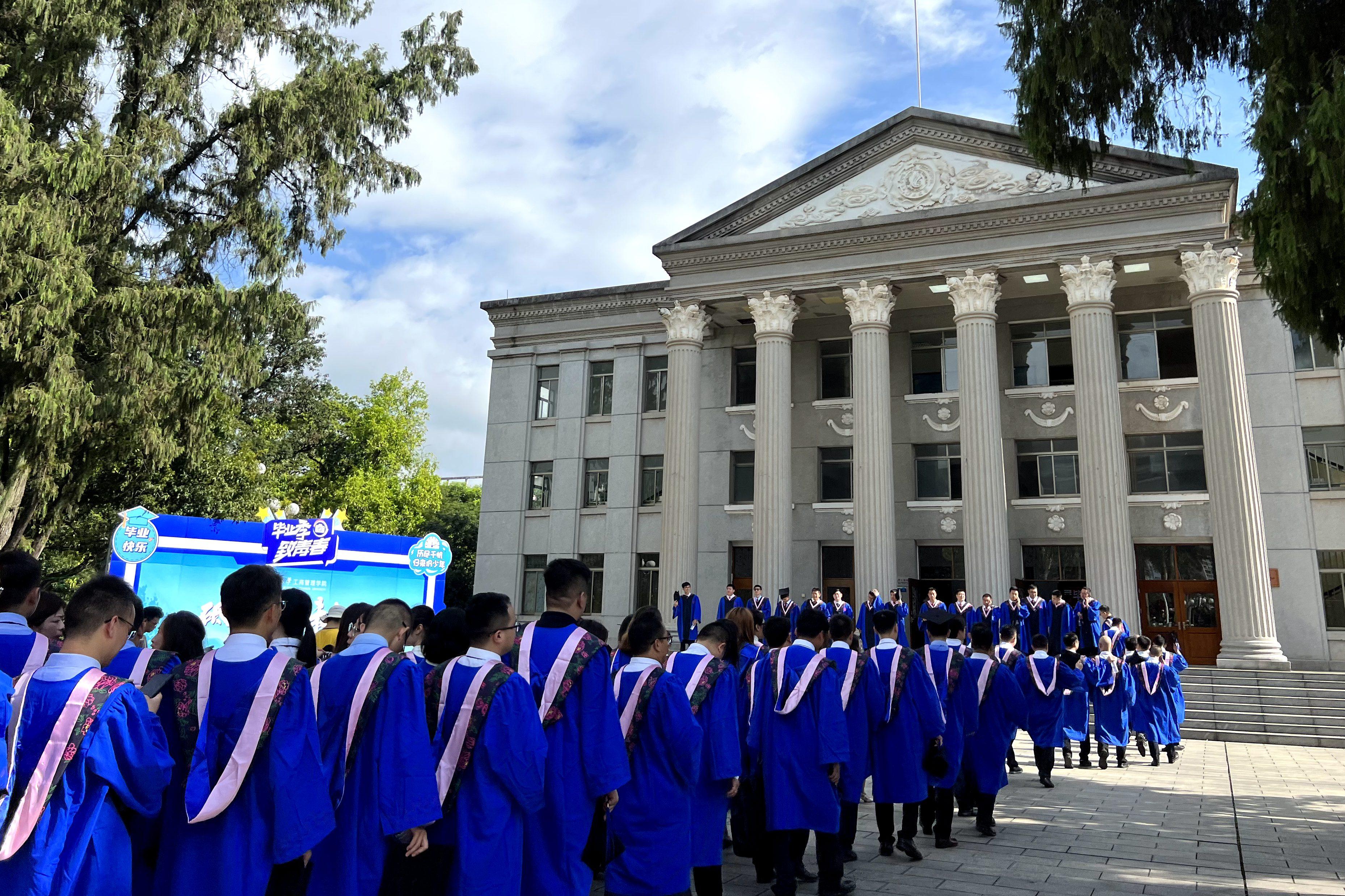 在学校大礼堂举行2023届毕业生毕业典礼暨学位授予仪式。全体院领导和各系教师代表出席典礼,2023届776名毕业生(研究生489人、本科生287人)参加了典礼。典礼由蘑菇视频