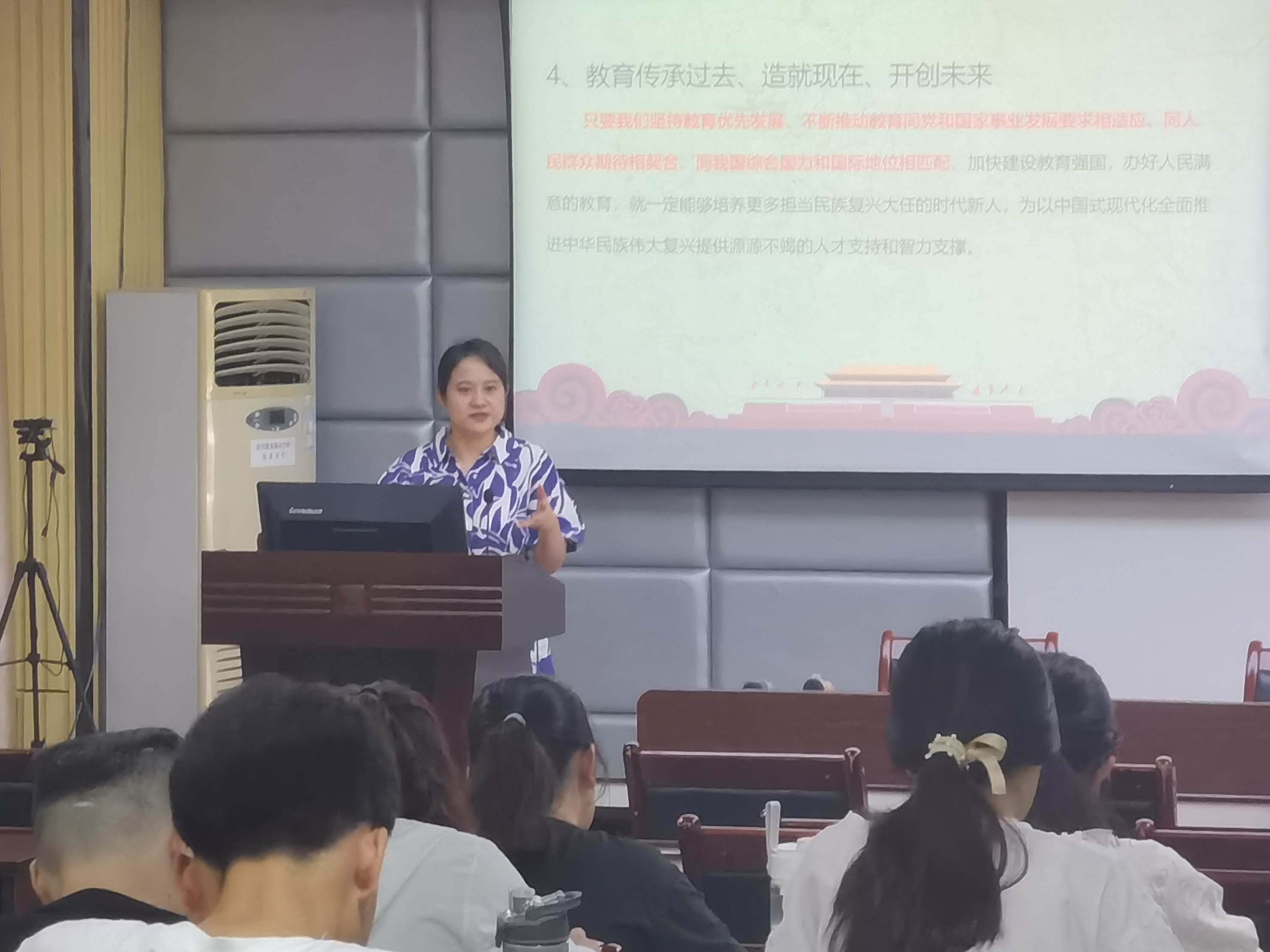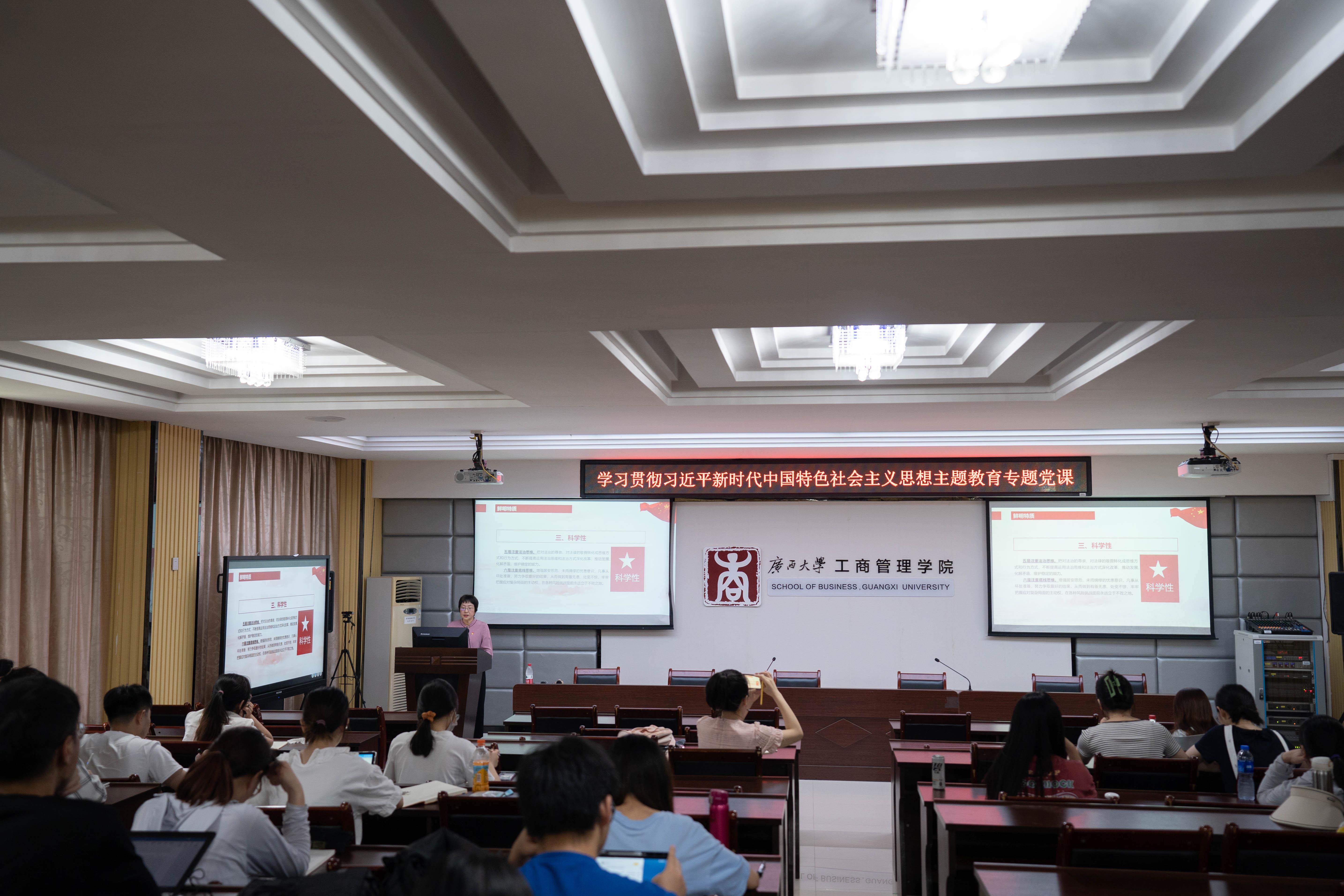124报告厅为研究生第三党支部、本科生第三党支部讲授专题党课。她聚焦我国教育事业发展基本情况,系统阐述了实施人才强国战略的重要性和必要性,以及党的二十大对深入实施科教兴国,强化现代化建设人才支撑作出的战略部署。