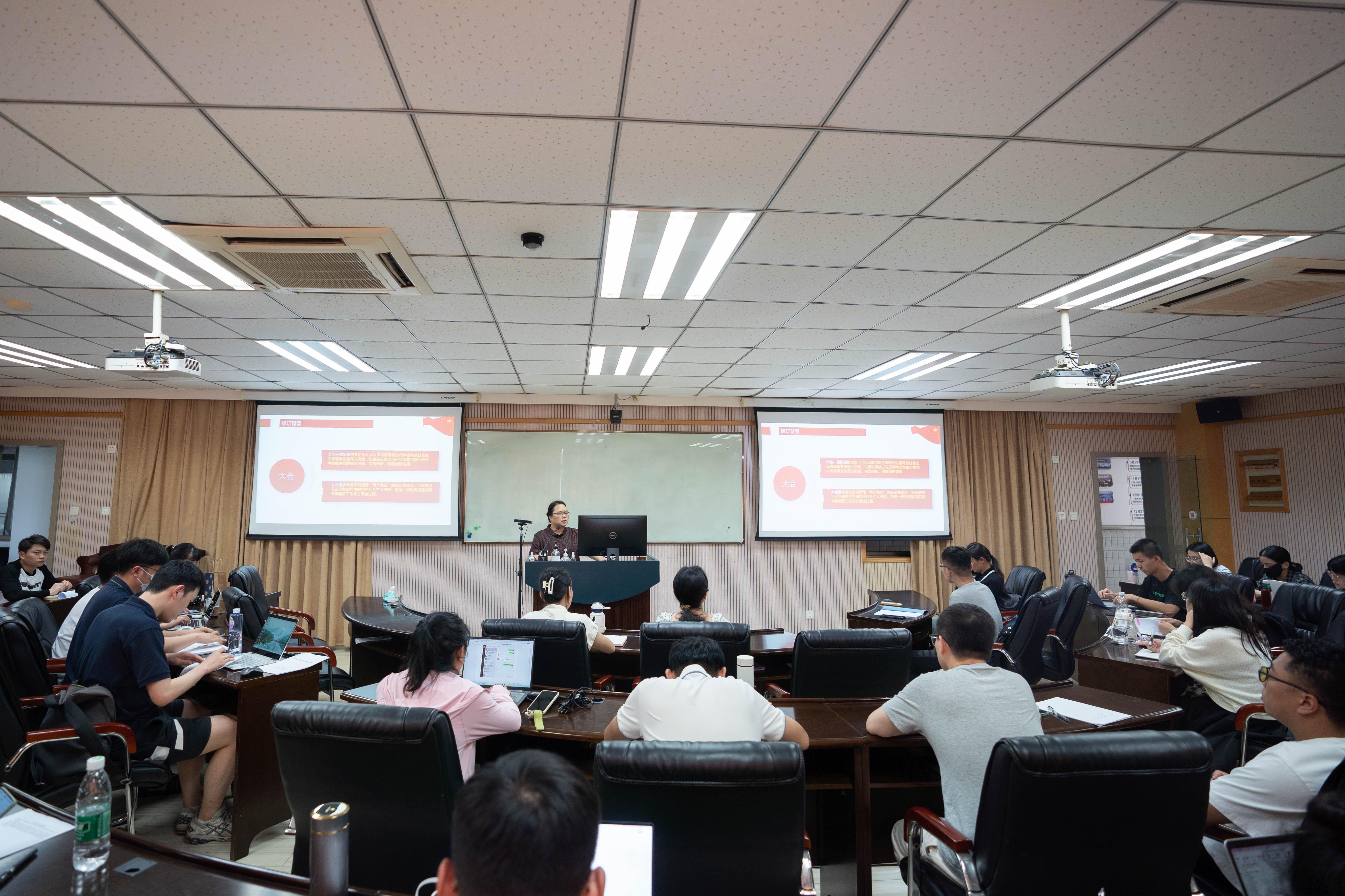 511教室为研究生第五党支部讲授专题党课。她通过党章修订的背景、修订的主要内容、新修订的全文等,结合研究生教育进行解读,希望大家自觉地学习党章、遵守党章、贯彻党章、维护党章。