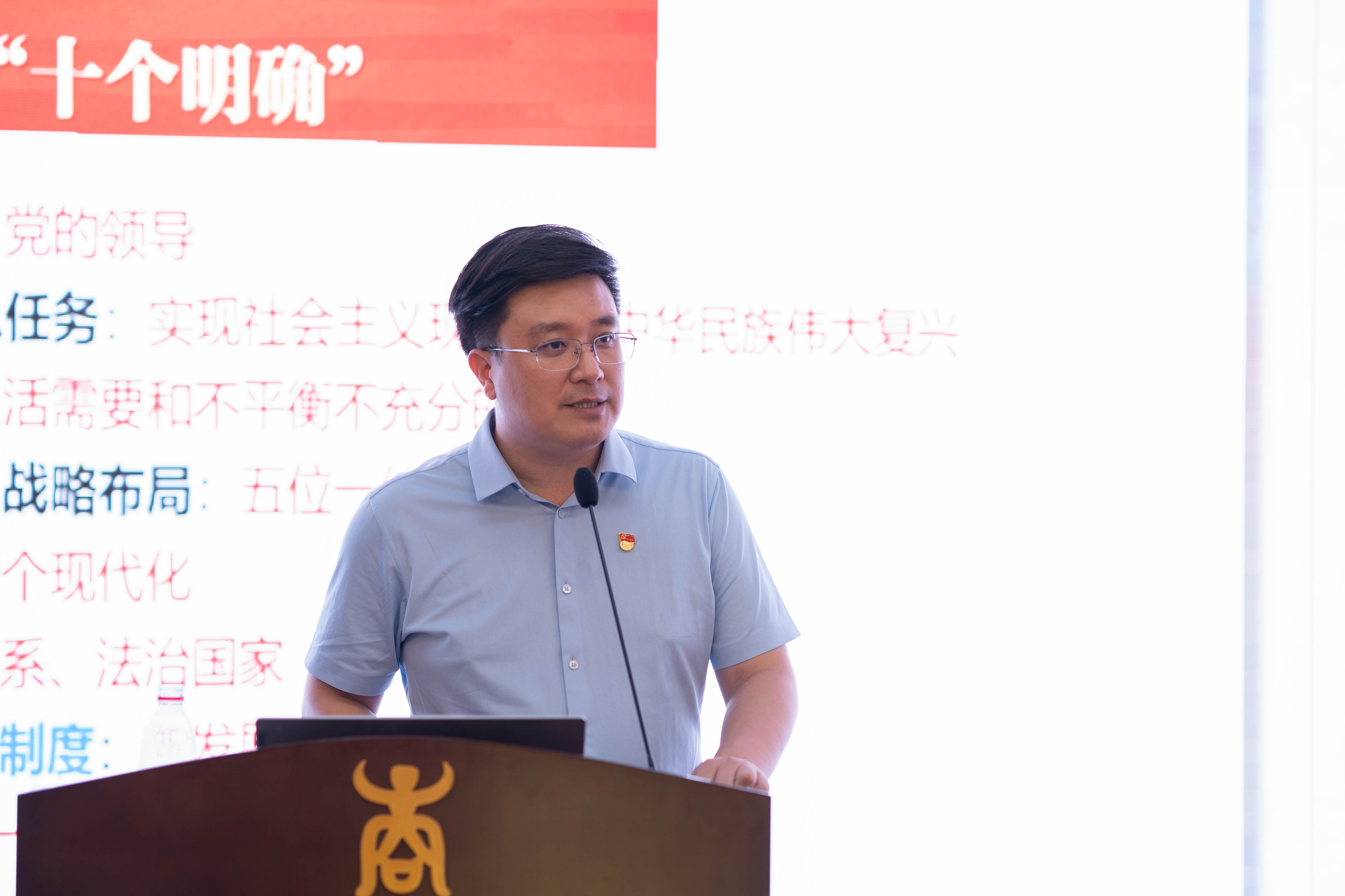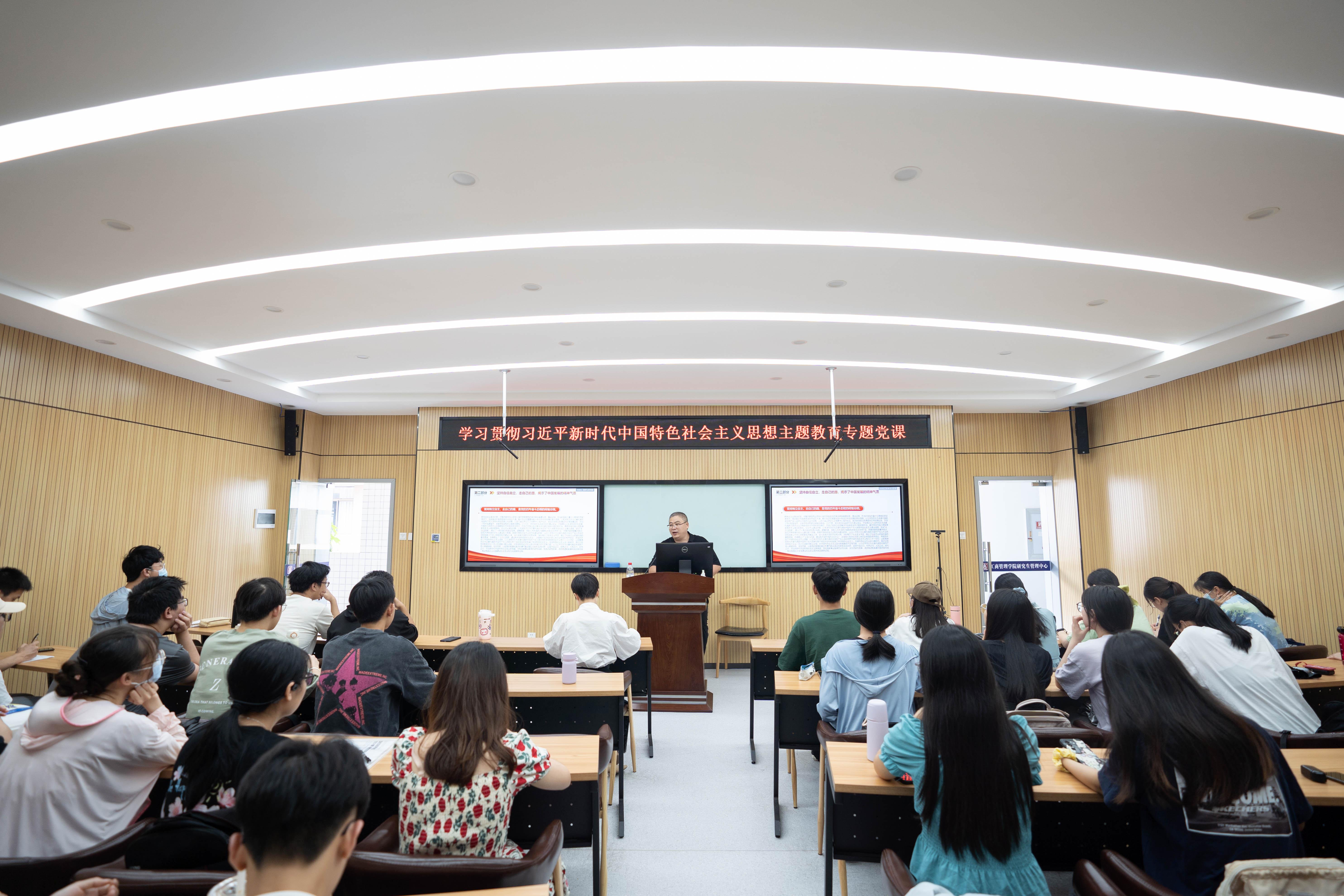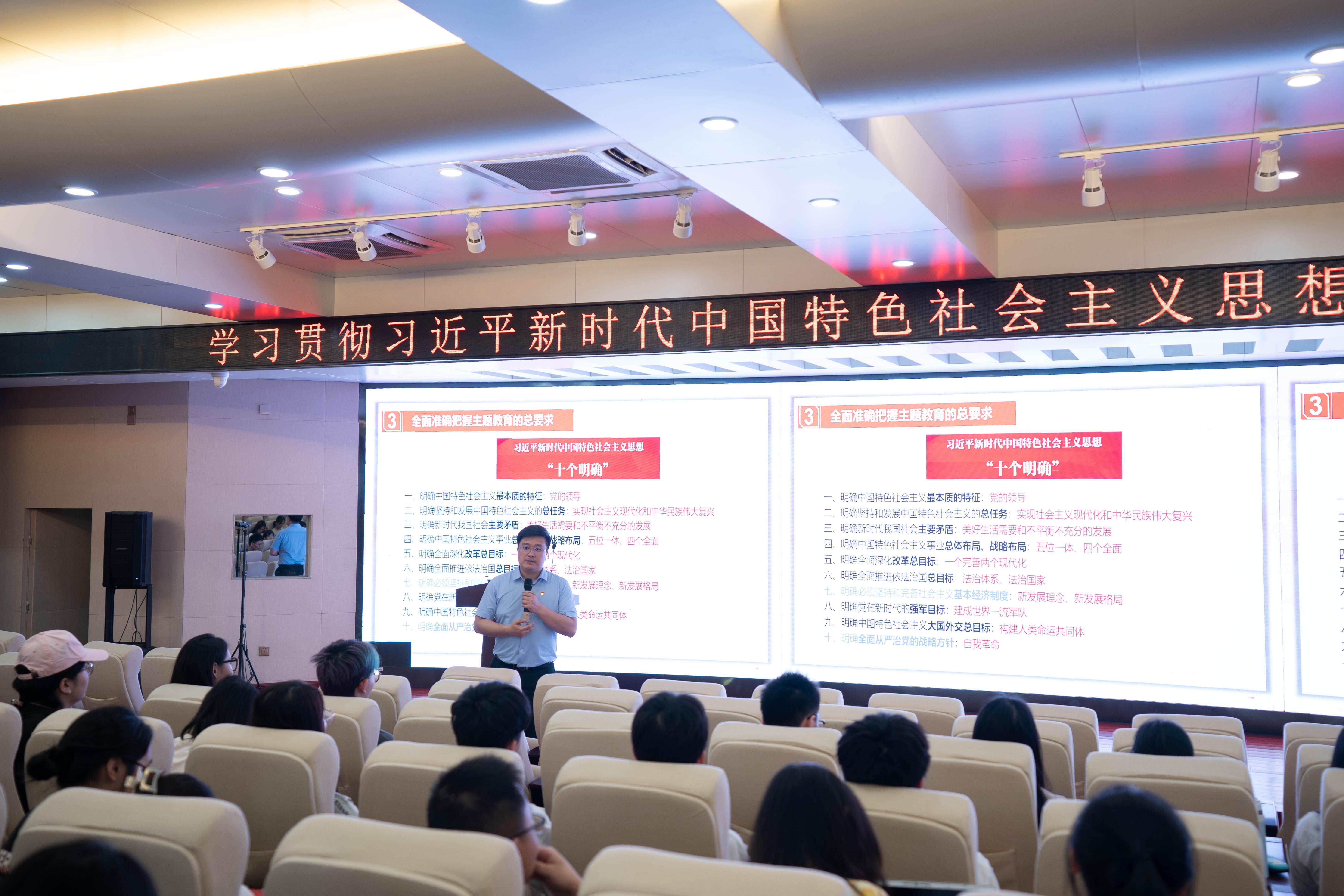 128报告厅为研究生第二党支部、本科生第二、第五党支部讲授专题党课。他通过举实例,与同学们互动的方式,带领同学们系统理解了如何牢牢把握主题教育“学思想、强党性、重实践、建新功”的总要求,并勉励大家要“敢想敢为又善作善成”。