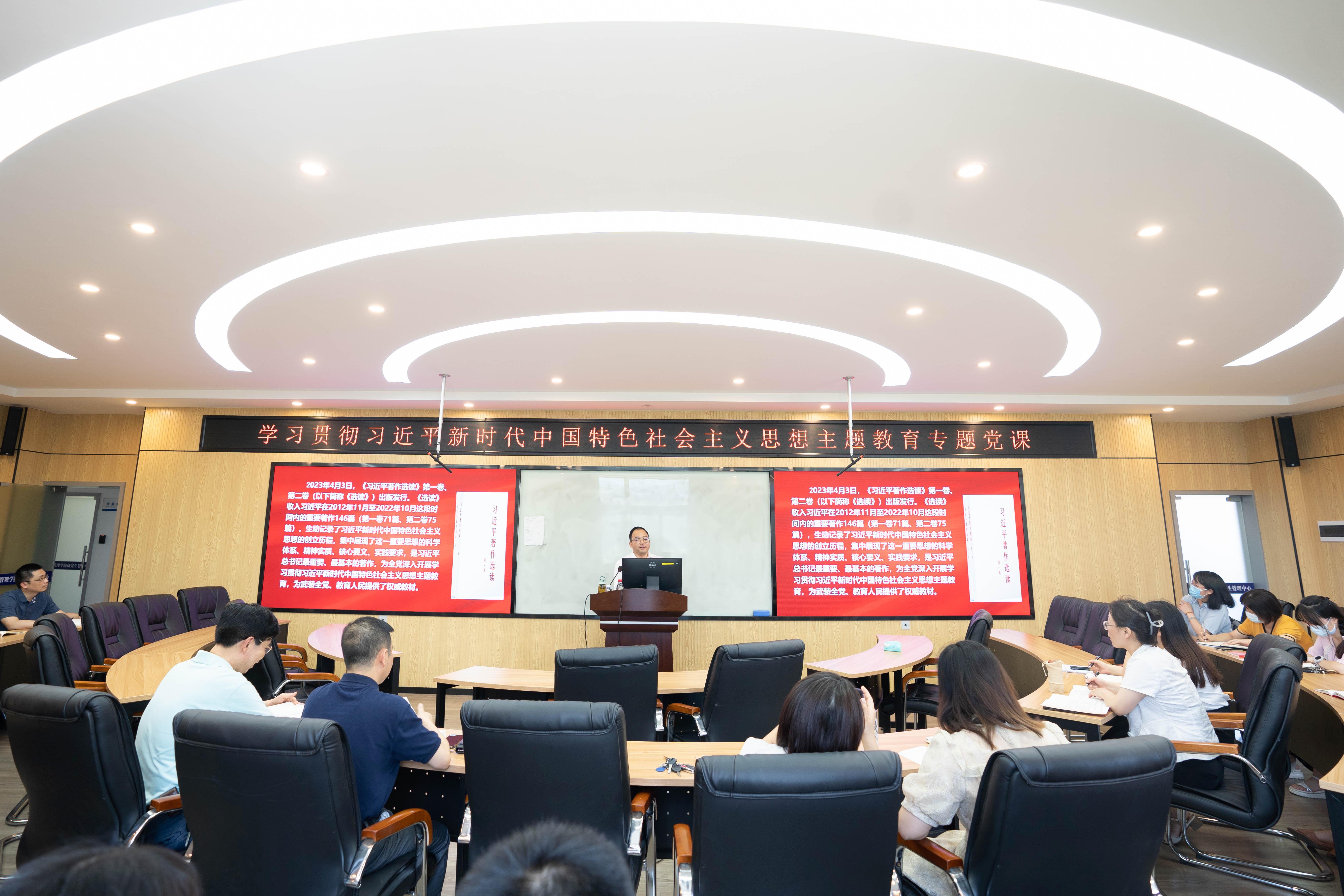 509A教室为全体教工党支部教师讲授专题党课。他深刻阐释了《习近平著作选读》出版的背景与重大意义、科学体系与丰富内容、学习要求与贯彻落实。罗诚书记指出,《习近平著作选读》为全党深入开展学习贯彻习近平新时代中国特色社会主义思想主题教育,为武装全党、教育人民提供了权威教材,希望老师们把《习近平著作选读》作为理论学习教材,善于聆听时代声音,勇于坚持真理,更好推动习近平新时代中国特色社会主义思想进教材、进课堂、进头脑。