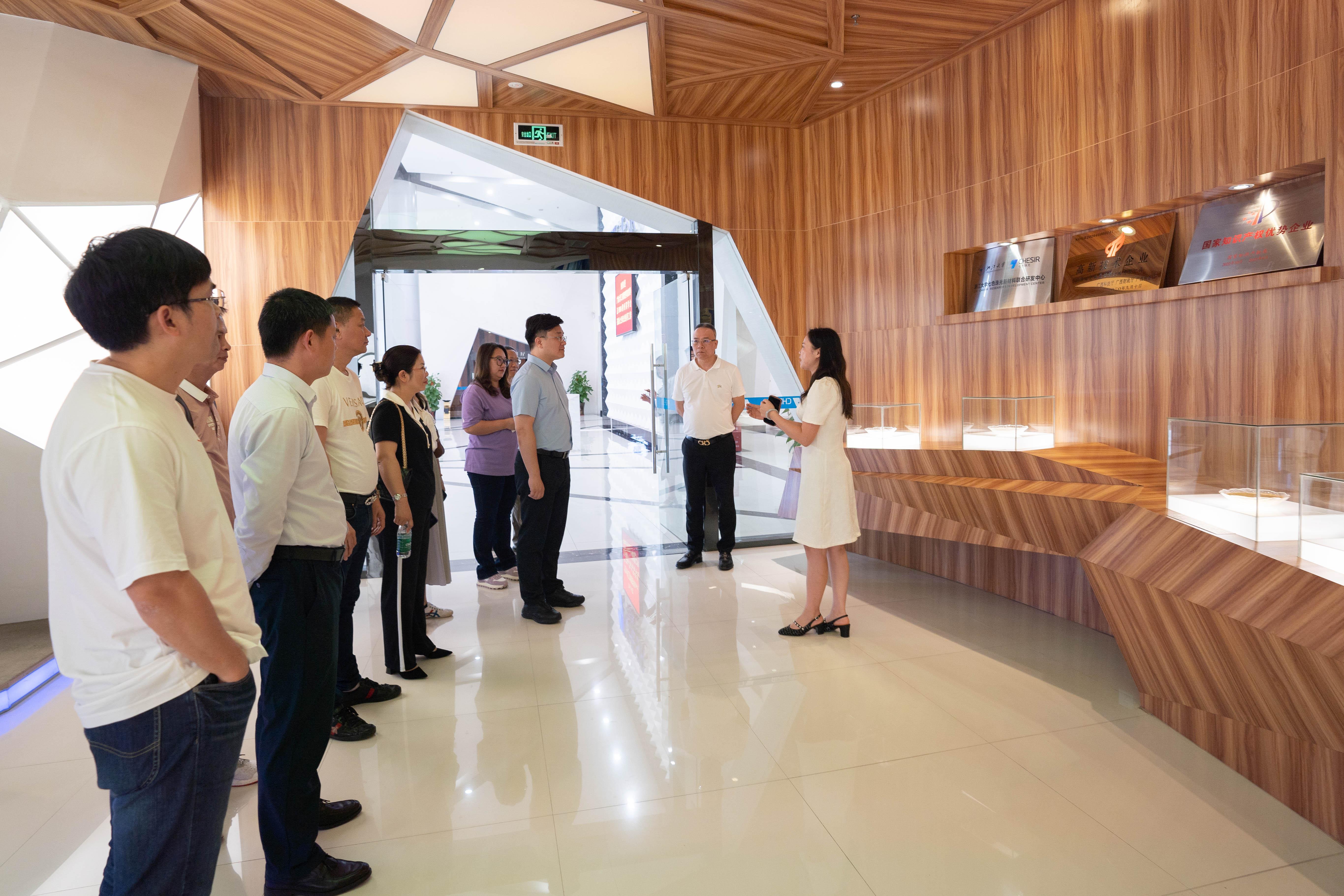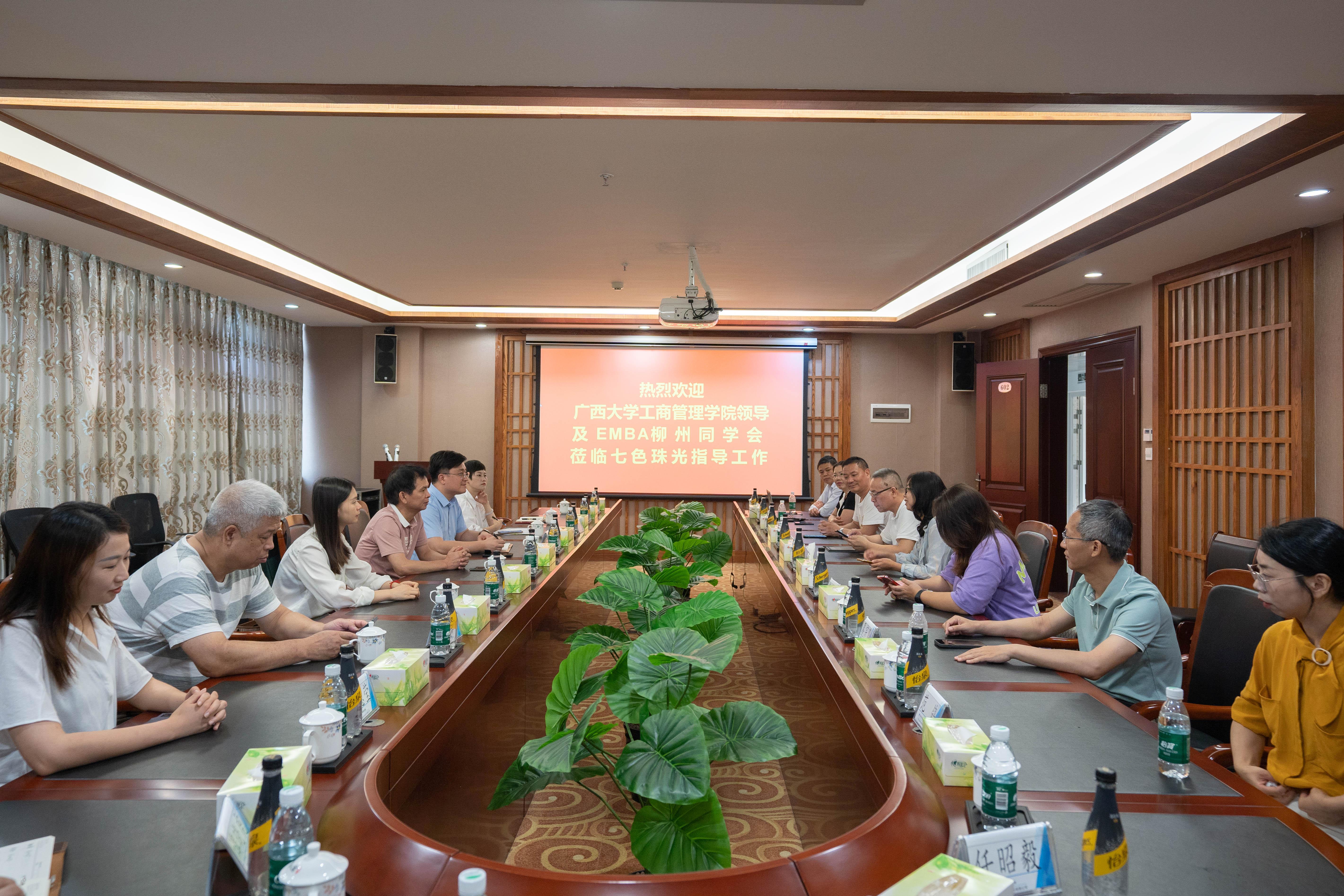 党委书记罗诚、党委副书记黄晋、副院长朱少英带队到柳州校友企业广西七色珠光材料股份有限公司(以下简称为“七色珠光”)、广西远道投资集团调研(以下简称为“远道投资”),开展“访企拓岗促服务”专项行动,团委书记马丽娟、组织员黄照温等相关老师,以及EMBA柳州校友会部分代表参加此次活动。
