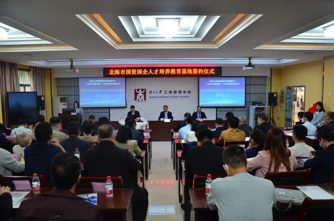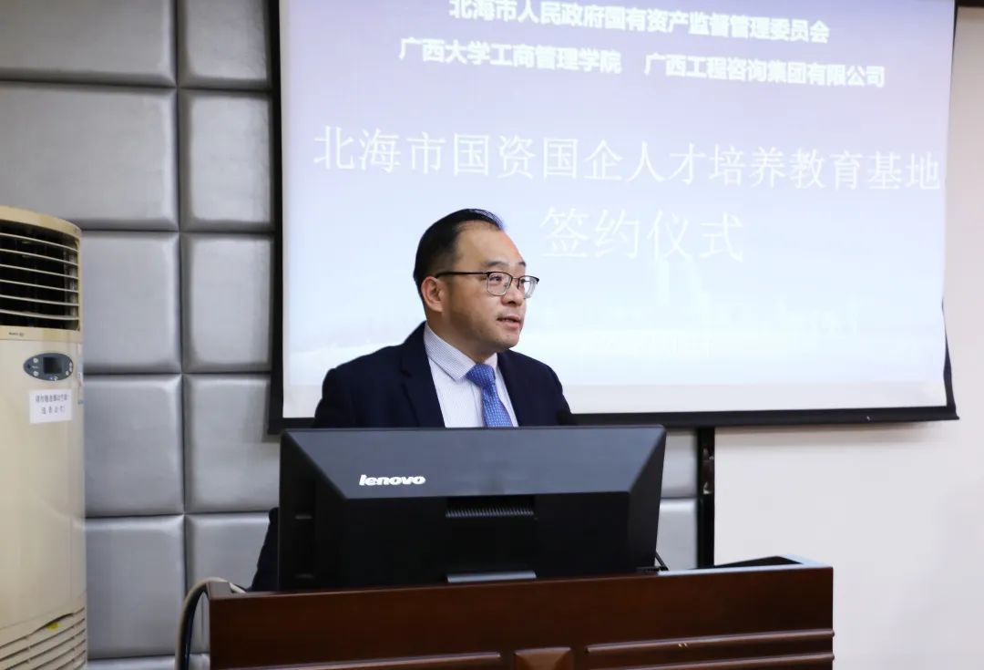 、广西工程咨询集团有限公司合作共建的“北海市国资国企人才培养教育基地”签约揭牌暨第一期培训班开班仪式在蘑菇视频124会议室举行。北海市国资委党委书记陈海、蘑菇视频