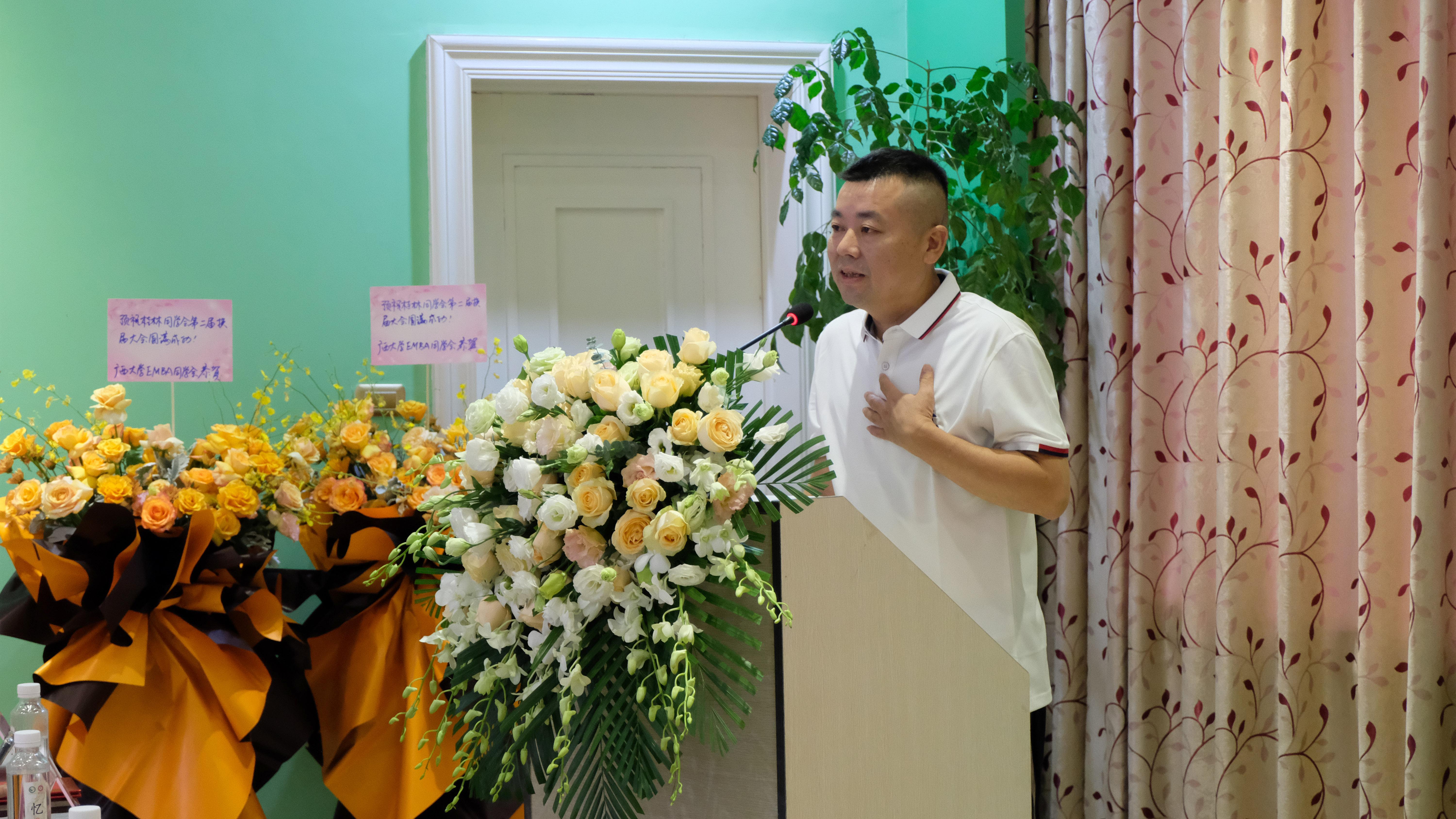刘加晓会长代表EMBA贵港同学会全体会员,向本次EMBA桂林同学会换届成功选举表示祝贺,并盛情邀请老师和兄弟同学会到贵港交流,增进友谊,共谋发展。