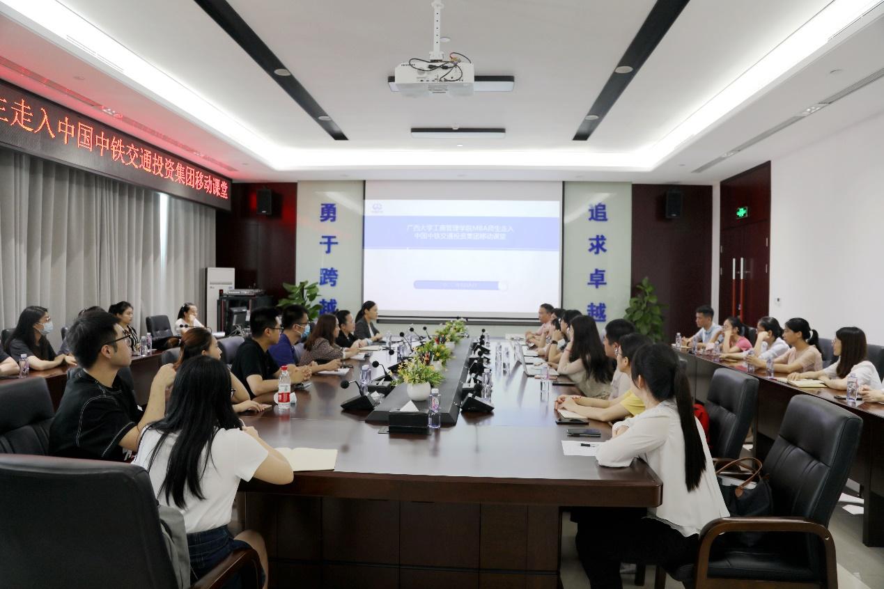 7月9日下午,蘑菇视频MBA教育中心主任叶映带领2021级MBA人力资源管理方向的同学们一行30余人走出校园,赴中国中铁交通投资集团开展以“央企人力资源管理如何与创新融合”为主题的移动课堂实践活动。
