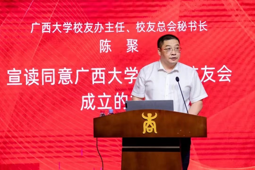 校友工作办公室主任、校友总会秘书长陈聚宣读批复