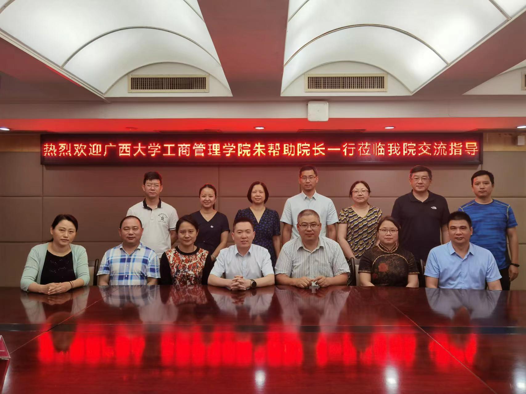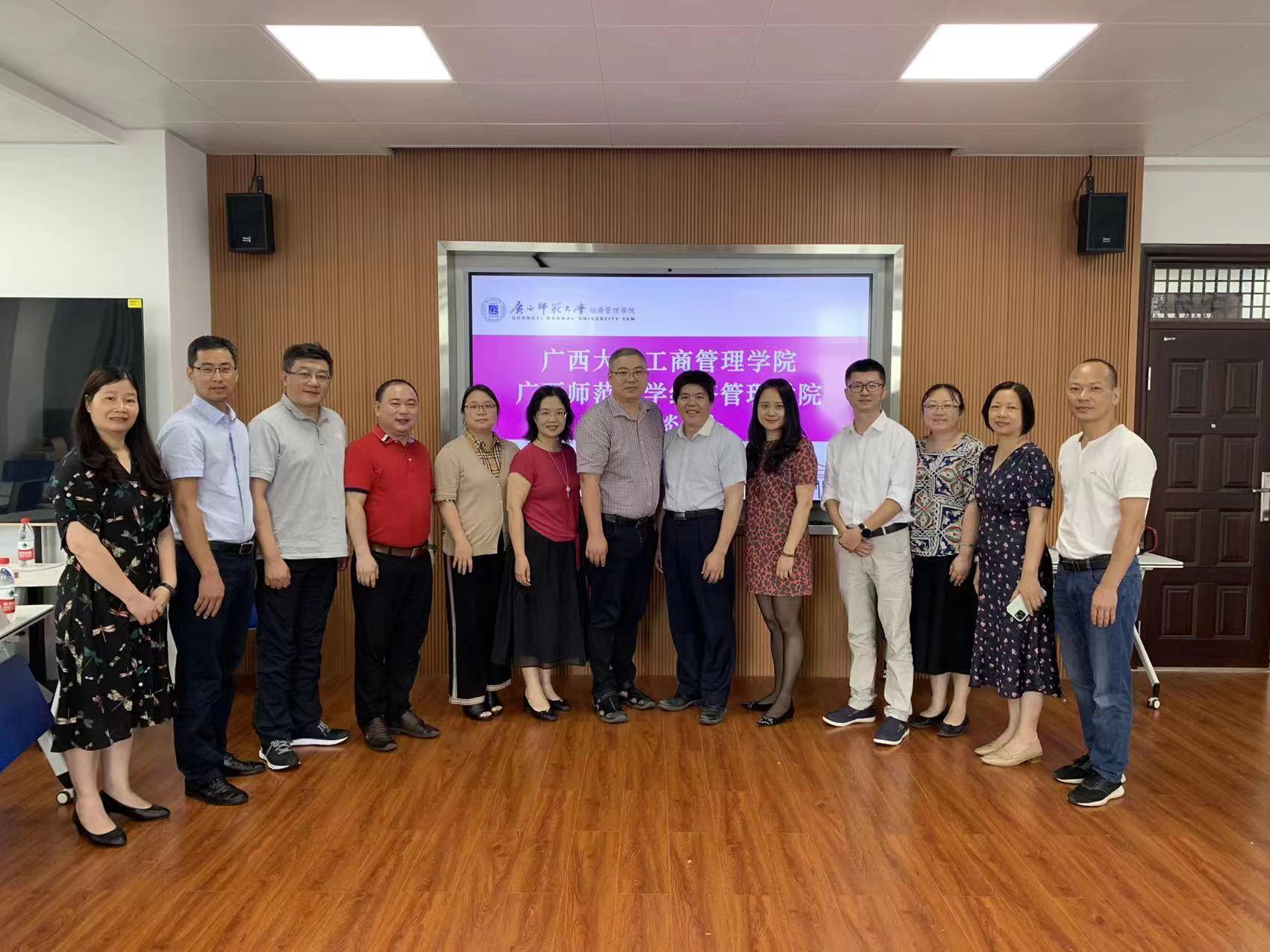 2022年6月9日-10日,蘑菇视频朱帮助院长带队一行8人赴桂林部分高校走访调研,就新时代背景下的学科建设、人才培养、团队建设、管理机制等问题进行具体交流。广西师范大学经济管理蘑菇视频