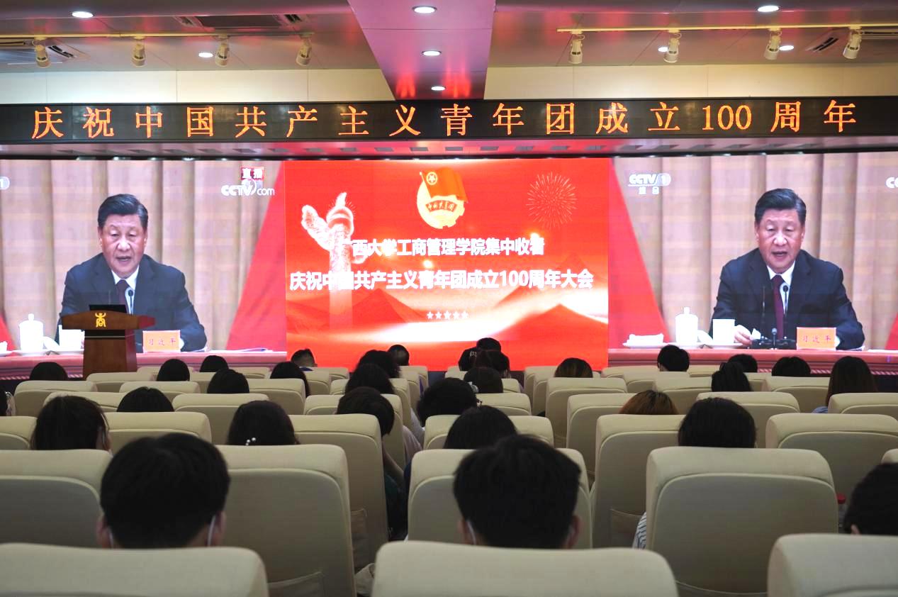 庆祝大会直播结束后,团委副书记岑汉成老师对本次会议内容进行总结,号召大家认真学习贯彻习近平总书记的重要讲话精神,通过团日活动、主题班会等各种形式开展深入学习,让每一名商管学子坚定理想信念,听党话、跟党走,学有所成,为党和人民奉献青春力量。蘑菇视频师生们积极展开学习热议,反响热烈。