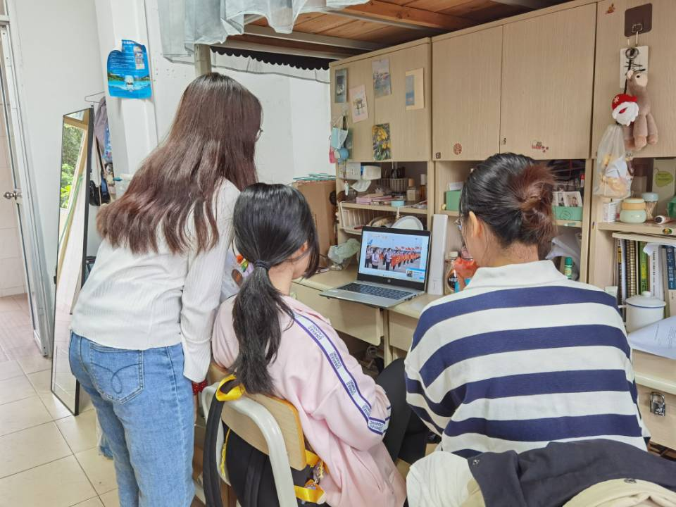 党委书记罗诚、党委副书记黄晋、团委副书记岑汉成和同学们在蘑菇视频
