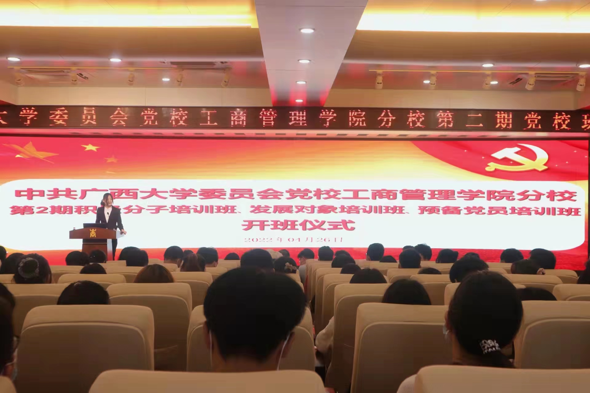 党委书记罗诚、党委副书记黄晋,专职组织员黄照温、团委书记马丽娟、团委副书记岑汉成、辅导员冯莎莎,以及来自入党积极分子党校班、发展对象党校班和预备党员党校班的学员代表共同参加了开班仪式。