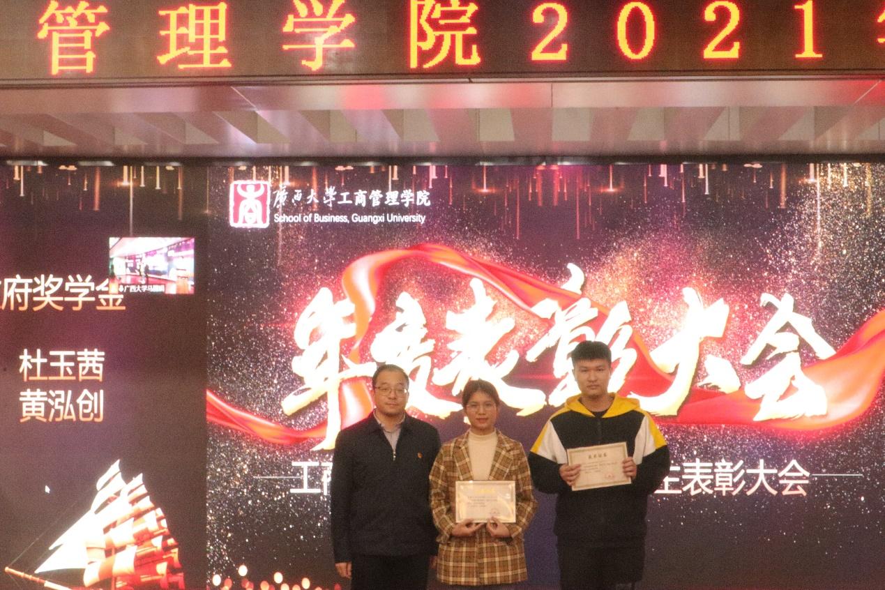 党委书记罗诚(左一)为自治区政府奖学金获得者颁奖