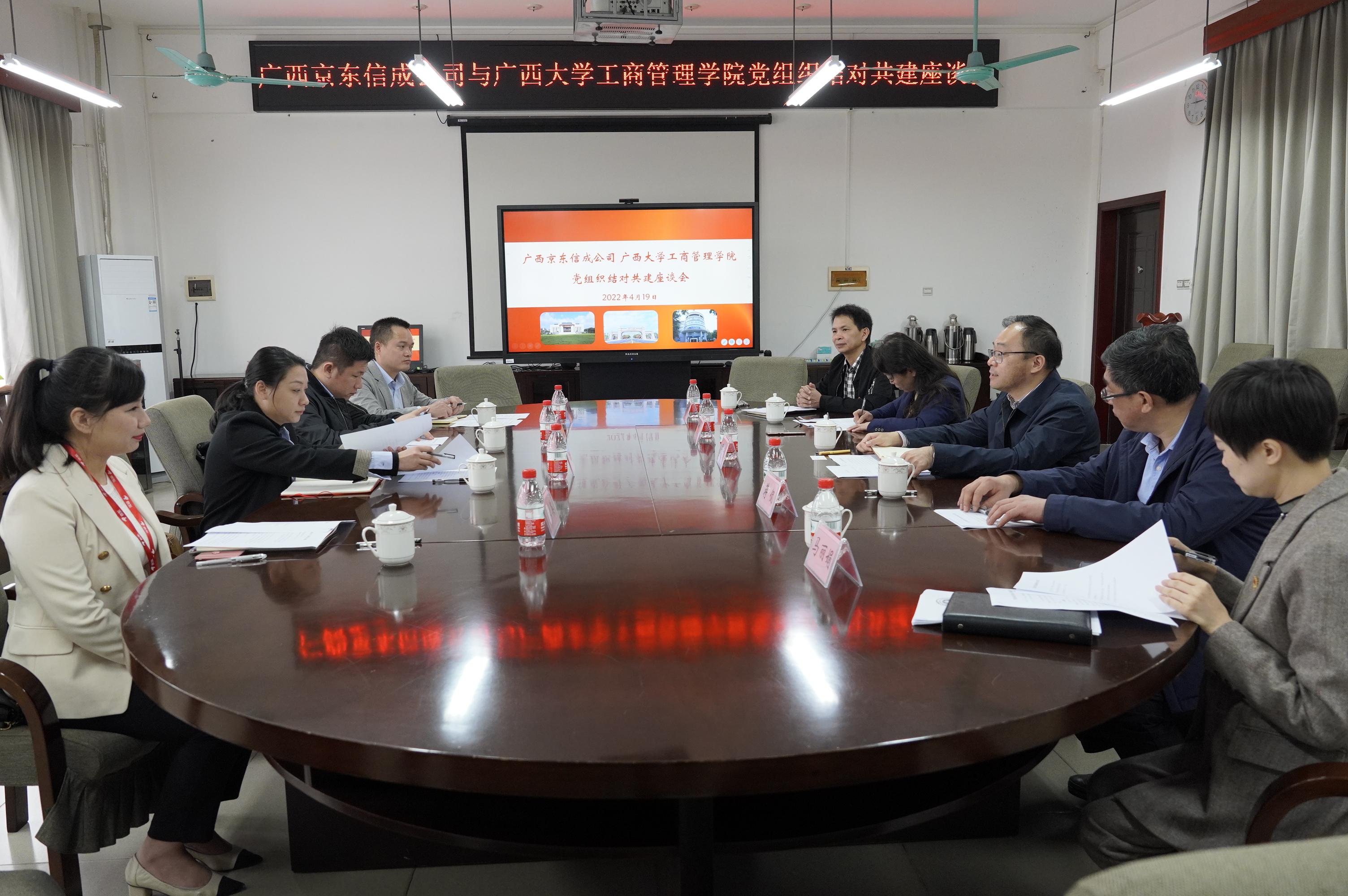 发展历程和党建做法。他指出,京东集团不仅是我国最具有影响力的综合电商之一,也是一家具有强烈社会责任和家国情怀的民族企业,在历次疫情援助中挺身而出、担当敢为,值得全院师生学习。此次与广西京东信成公司党总支协商开展党组织联学共建活动是党的基层组织建设创新实践形式之一,共建双方可依托彼此优势,以共建促党建,以党建促发展,以发展强党建,在数字经济、智能物流等领域方面开展多层次、多项目的合作共建,互促互进。