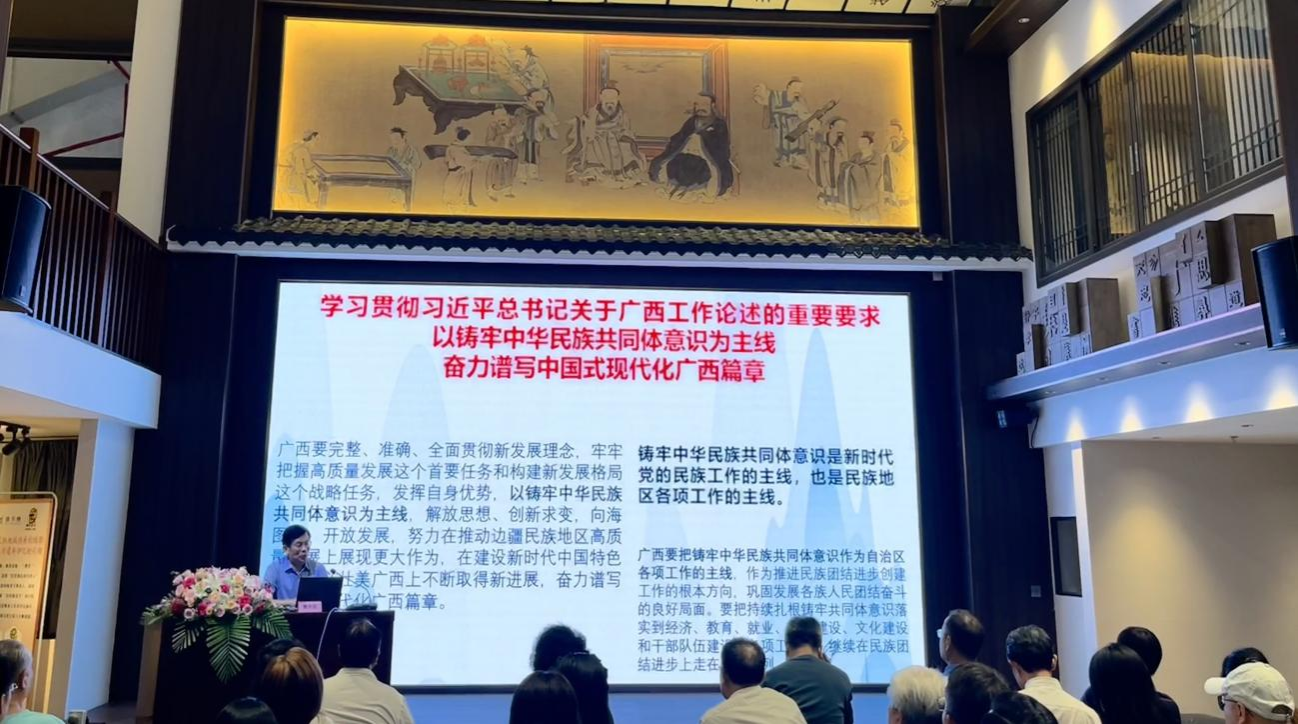 6月26日,由广西中华文化促进会主办,汉字馆、中华文化书院承办的“铸牢中华民族共同体意识视野下的广西文明史”专题讲座在南宁市汉字馆举行。讲座由自治区咨询专家、自治区党委讲师团特聘教授、广西干部蘑菇视频