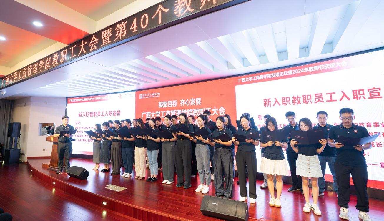 活动中,黄晋书记和朱帮助院长首先为新入职教职工赠送了校徽,在黄晋书记的带领下,新入职的27位老师庄严宣誓,表达了为教育事业贡献更多智慧力量的决心。