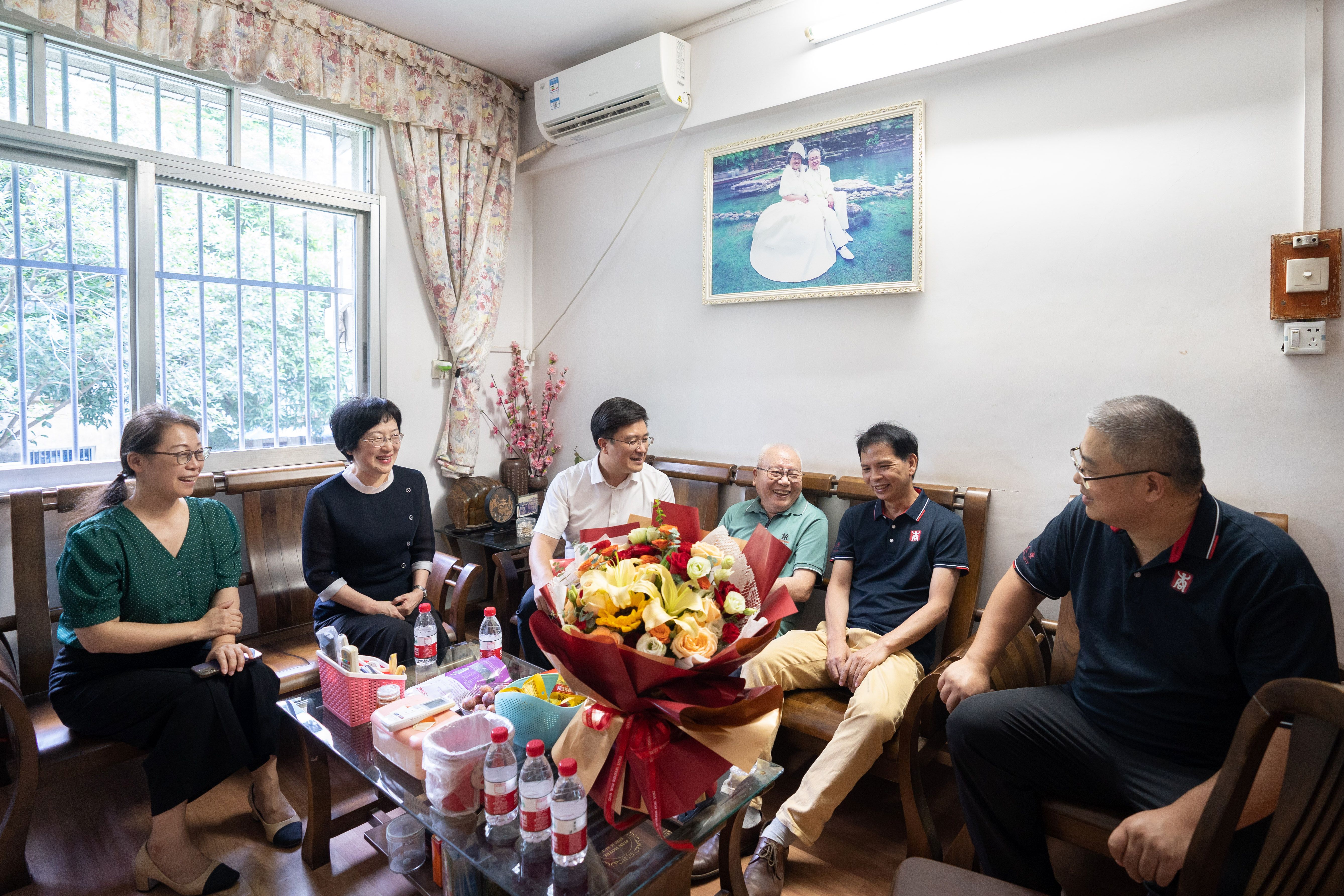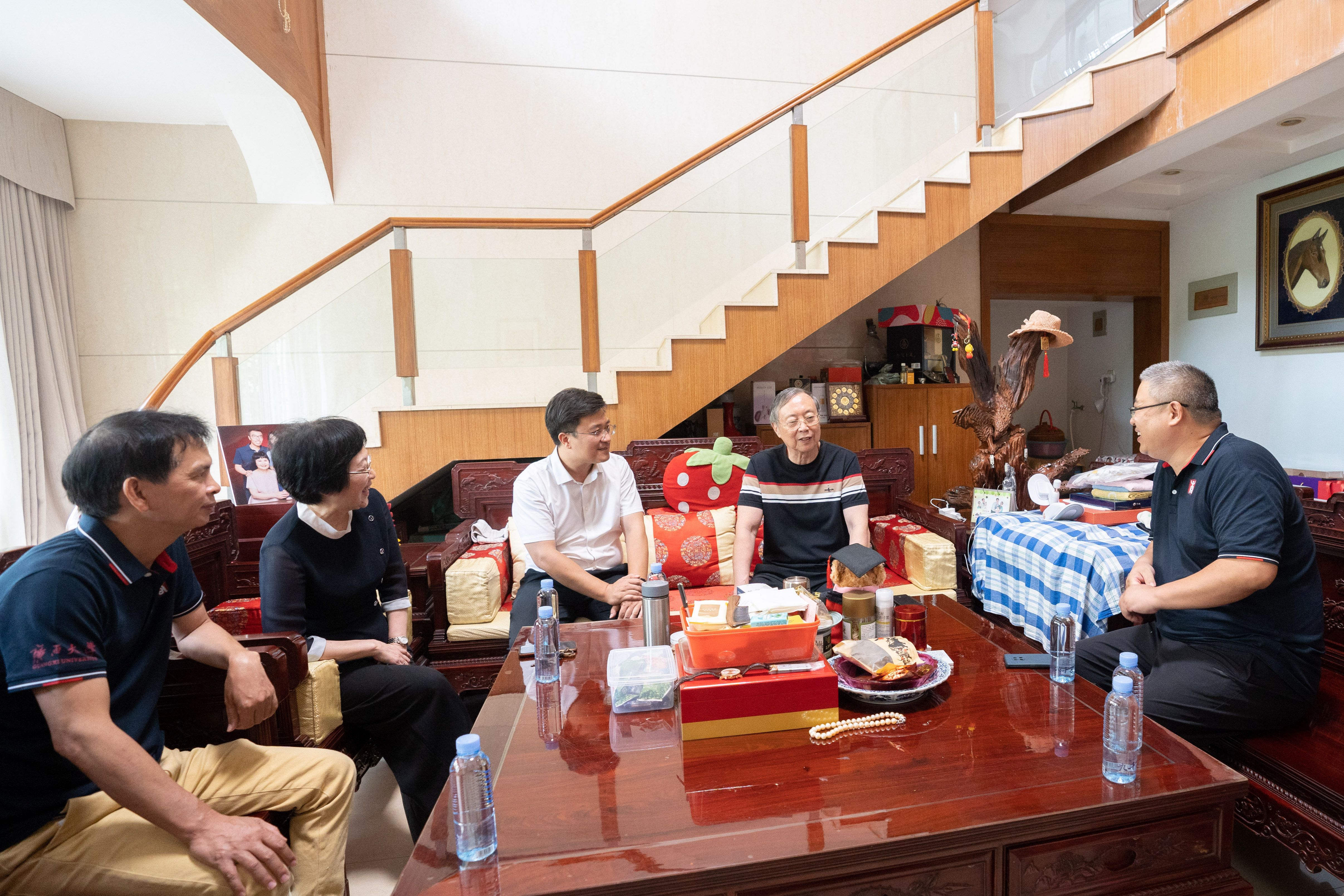 领导一行与左昌鸿老师(右三)亲切交流