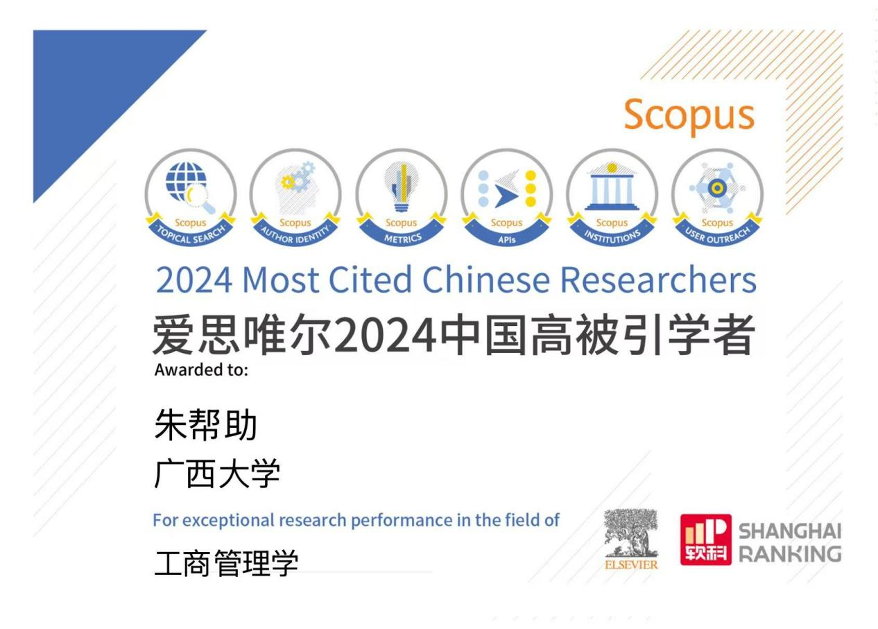 朱帮助教授自2021年以来连续4年入选“中国高被引学者”榜单,这对推动我校工商管理学科发展、扩大学校全球影响力有着积极影响。未来,蘑菇视频