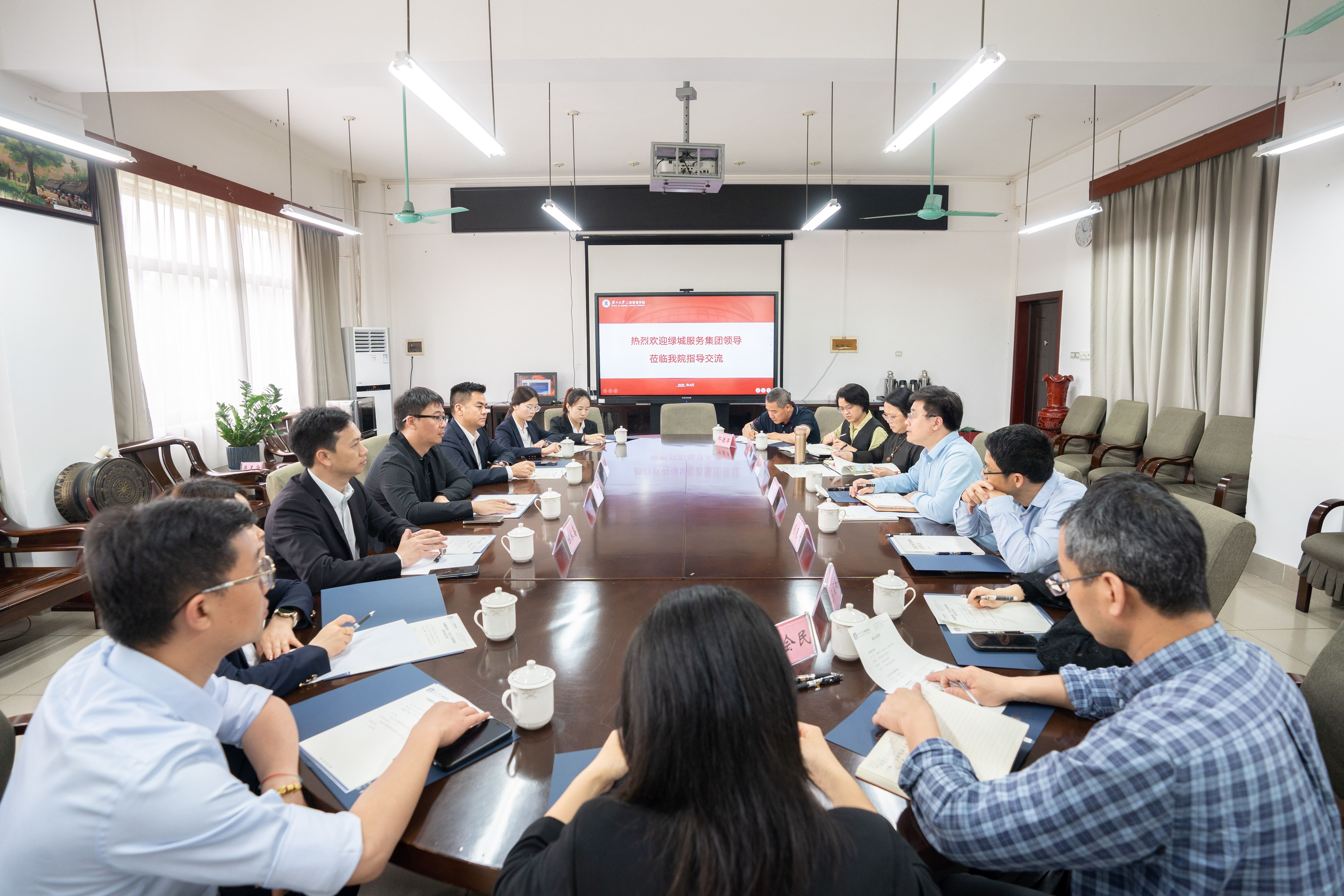 党委书记黄晋,党委副书记肖克宁、副院长朱少英与来宾在420会议室座谈。