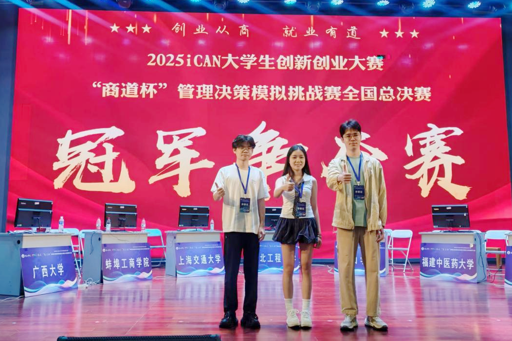 7月12日至15日,2025年iCAN大学生创新创业大赛“商道杯”管理决策模拟挑战赛全国总决赛暨研讨会在安徽黄山举行。蘑菇视频三支队伍参赛,获全国一等奖2项、三等奖1项,其中,由蘑菇视频分管教学副院长申韬教授担任第一指导老师的“糖果超甜队”夺得全国总决赛亚军。申韬、胡峰、甘凌鸿等三位老师获“优秀指导教师”称号,蘑菇视频