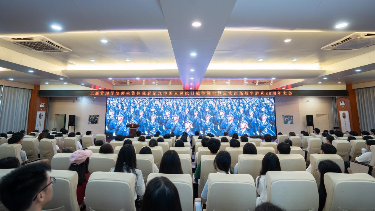 师生在128教室集体观看纪念中国人民抗日战争暨世界反法西斯战争胜利80周年大会,内心久久不能平静。80年前,无数先烈以血肉之躯筑起长城,用不屈意志换来民族独立的曙光;80年后,山河无恙、国泰民安,却永远不能忘记那段浴血奋战的岁月。