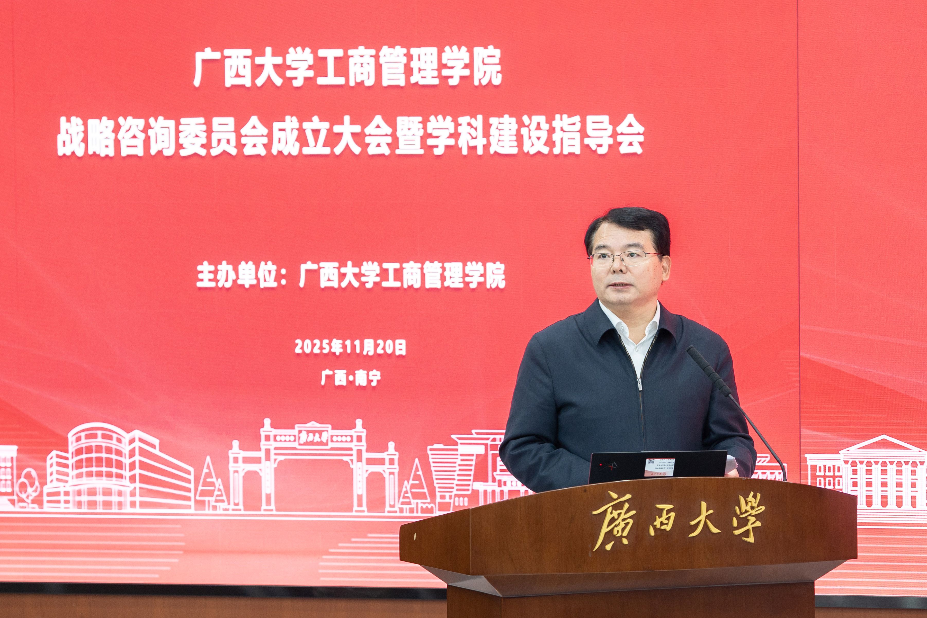 在学校君武馆第二会议室召开战略咨询委员会成立大会暨学科建设指导会,广西壮族自治区政协第十一、十二届副主席、广西慈善联合总会会长,蘑菇视频