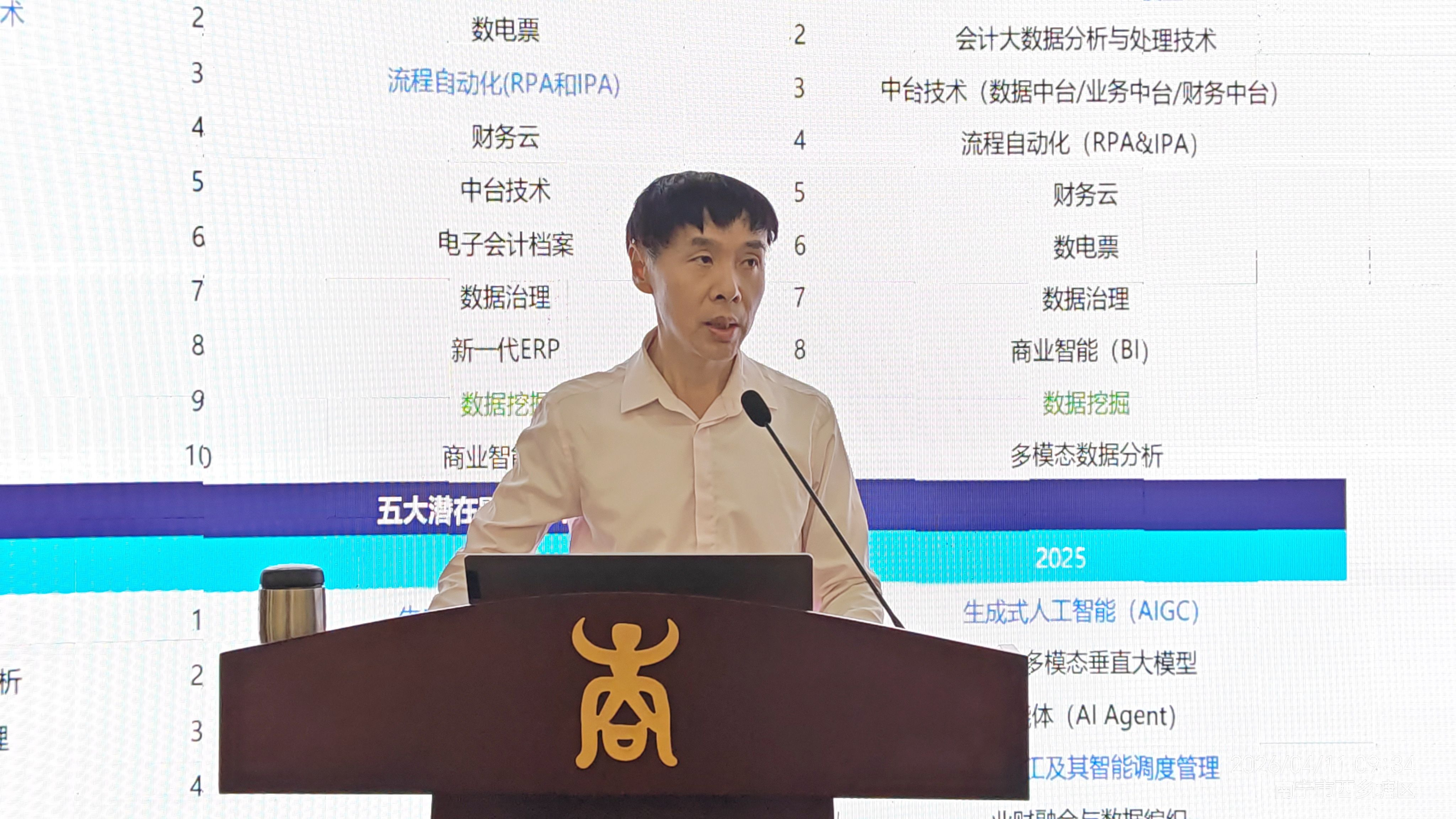 在主题分享环节,金蝶教育专家傅仕伟博士聚焦AI技术发展趋势与教育变革路径,系统分析了大模型技术演进及其对课程体系与人才能力结构的重塑作用,并结合实际案例深入讲解了AI在财务管理、经营分析及业务流程中的落地路径,重点呈现了财报智能体、监管智能体、招聘智能体等典型应用场景,为高校理解企业数字化转型提供了清晰参照。