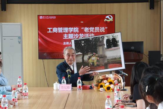 活动上,90多岁的曾纪梅老师精神矍铄,他结合自己的亲身经历,饱含激情地带领师生们回忆当年在抗美援朝、抗日战争上的峥嵘岁月。讲到情深处,曾纪梅老师向师生们展示他和他哥哥的老照片,并讲述了老照片背后蕴含的感人事迹。