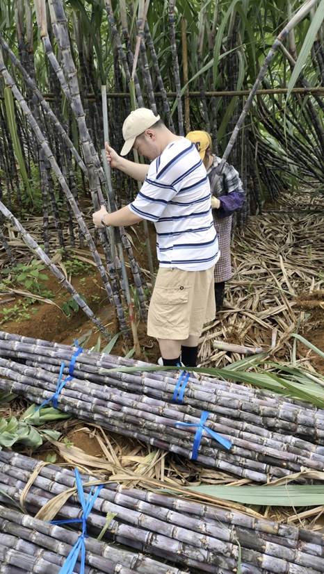 (实践团成员们在挖甘蔗)