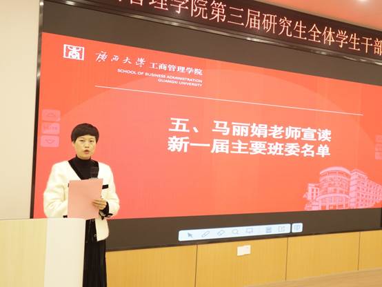 马丽娟老师宣读新一届团学组织学生干部任职名单