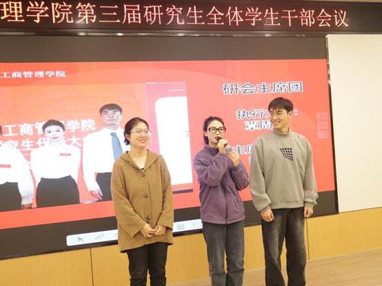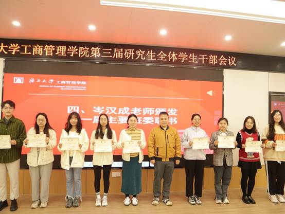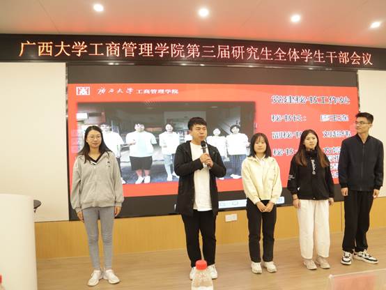 召开第三届研究生全体学生干部会议。院团委书记马丽娟,团委副书记岑汉成,院党委组织员黄照温,学工组辅导员王乐、张艳红、郁文丹出席指导,第二届,第三届研究生团学组织学生干部、各班班长和团支书。