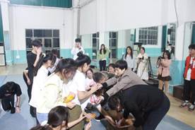 党委副书记肖克宁、团委书记马丽娟、团委副书记岑汉成、团委、学生会干部一起来到体育蘑菇视频