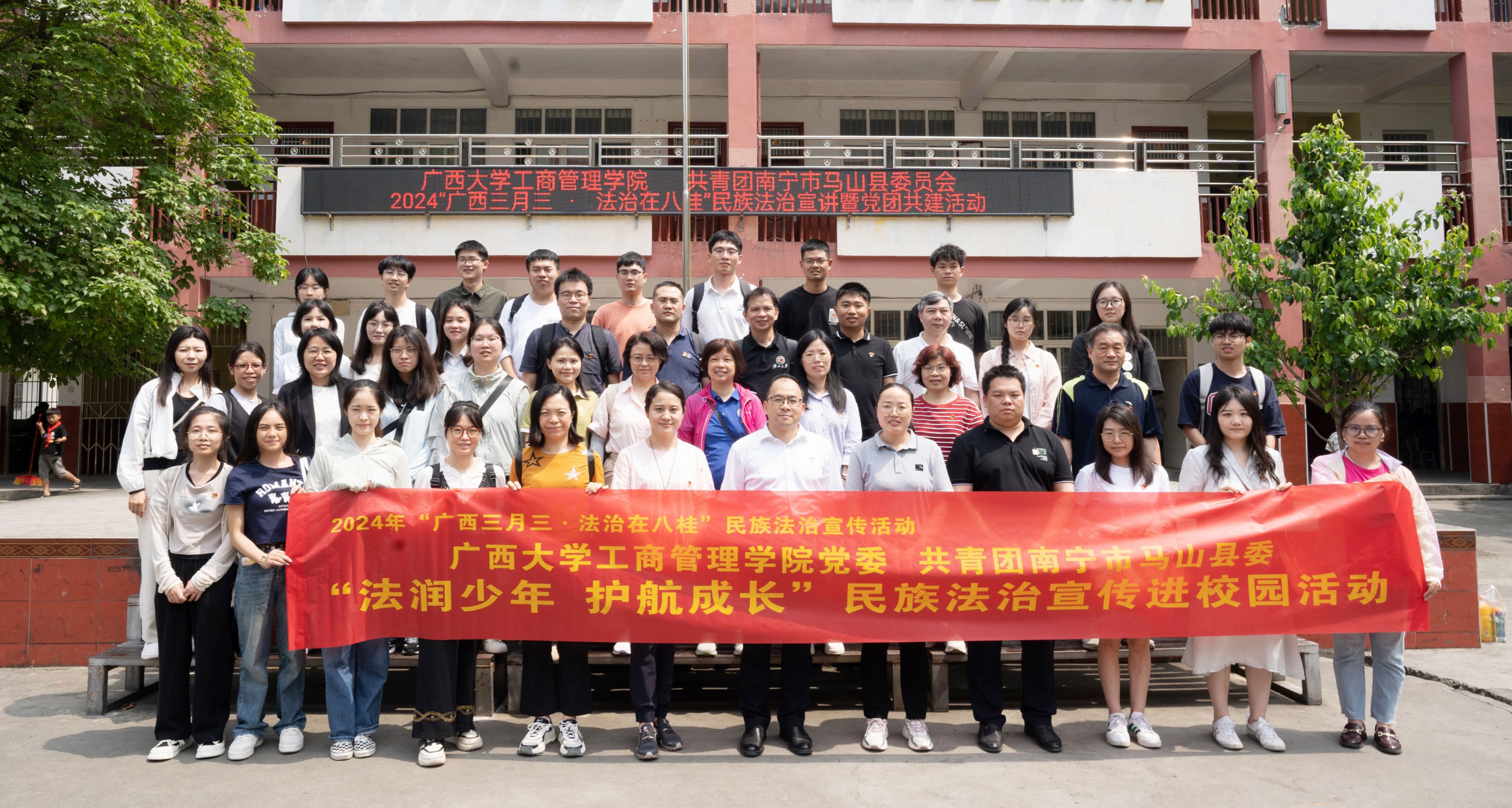 为深入贯彻落实习近平法治思想和习近平总书记对广西重大方略要求,4月26日,蘑菇视频 党委联合共青团南宁市马山县委员会开展“广西三月三·法治在八桂”民族法治宣传暨党团共建活动。蘑菇视频 党委书记罗诚、副院长申韬,马山团县委书记马玉花、马山县古寨瑶族乡党委书记陆家宝与蘑菇视频 教工财会党支部、旅管党支部、行政党支部和研究生第二党支部的师生党员代表参加了活动。