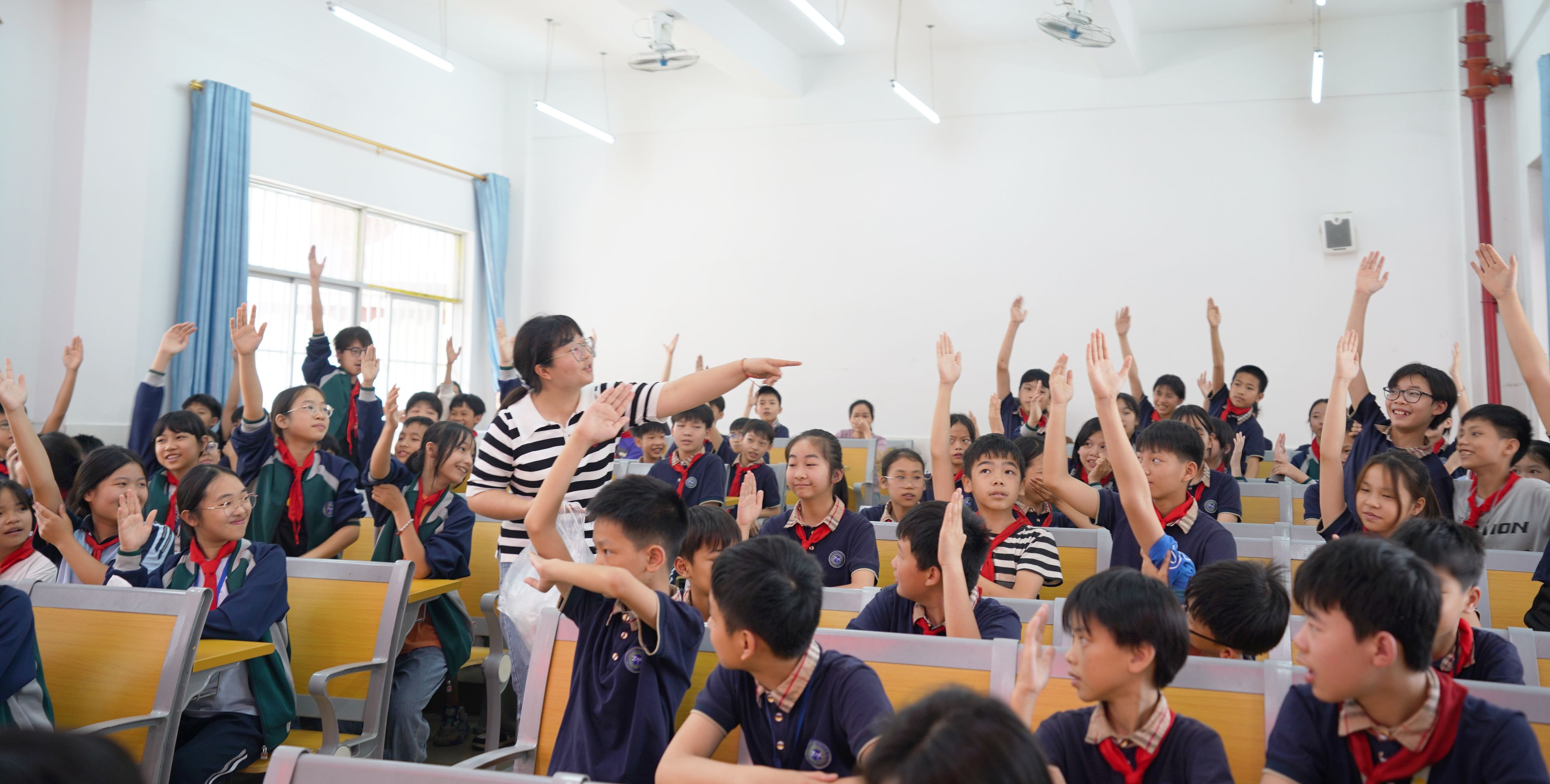 在古寨瑶族乡中心小学,“法润少年 护航成长”民族法治宣传进校园活动在“五十六个民族,五十六朵花……”的优美旋律中拉开帷幕,来自教工财会党支部的教师党员耿利肖博士从“民族团结”“民族区域自治制度”以及“相关法律法规”三个方面,结合广西三月三节日,向同学们详细地讲解了法治与民族团结、各民族共同发展之间的关系,让大家深刻认识到了维护民族团结、铸牢中华民族共同体意识的重要性。在知识竞答环节,同学们踊跃发言,积极互动,在寓教于乐中收获知识。