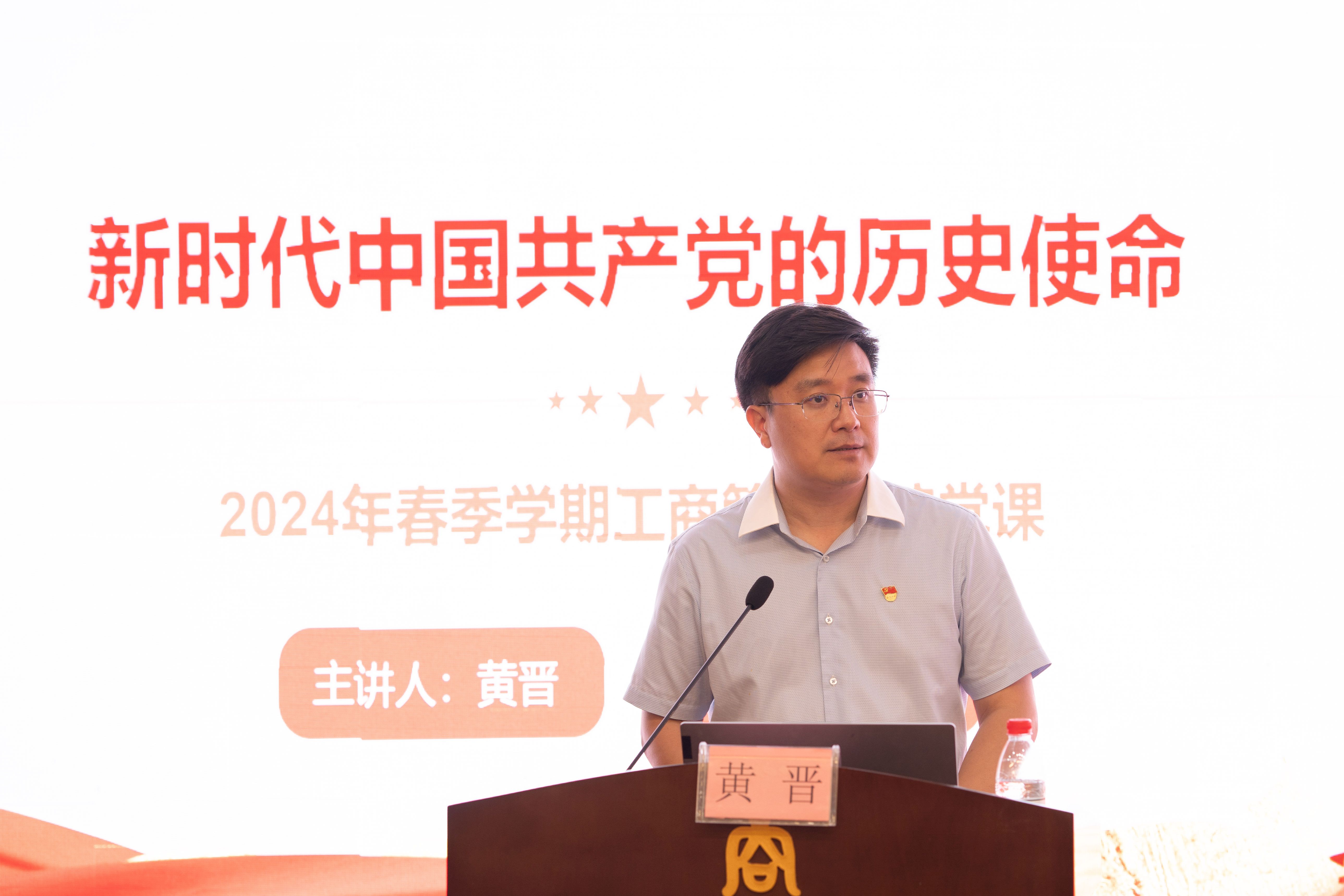 开班仪式结束后,学校学生工作部(处)副部(处)长黄晋受邀以《新时代中国共产党的历史使命》为主题开启本期党校班的第一堂专题党课。黄晋副部长通过丰富的理论、生动的案例,从合格共产党员的标准的角度出发,结合中国梦的具体内涵,带领同学们加深对中国共产党历史使命的认识理解,并以小组讨论的形式让大家积极探讨当代青年践行中国共产党的历史使命的实现路径。