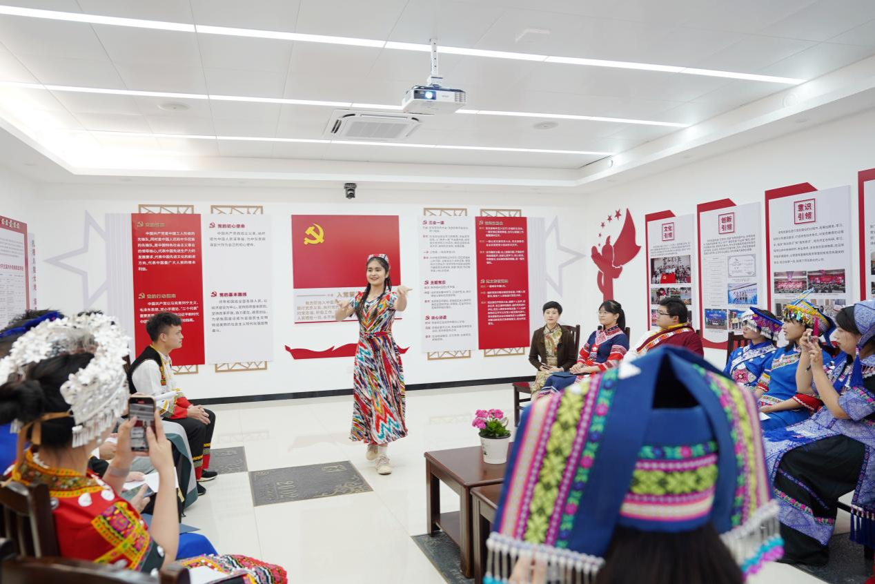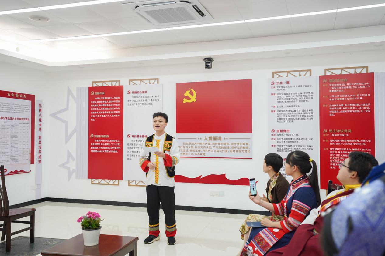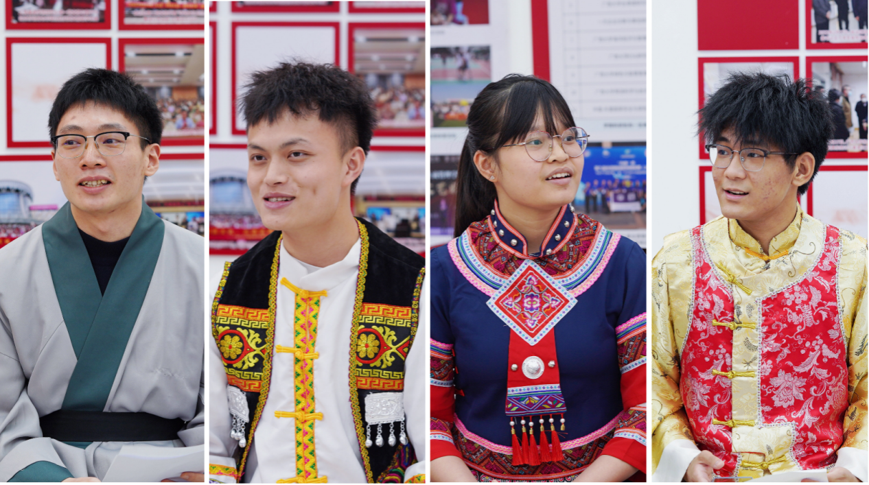 党委书记罗诚身着民族服装与壮族、汉族、仫佬族、苗族、瑶族、维吾尔族、纳西族、傣族、满族等14名各族学生代表欢聚一堂,共庆佳节。蘑菇视频