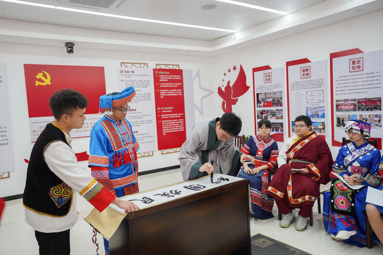一直高度重视并关心关注各民族学生的成长发展,教育引导各民族学生交流交往和交融,铸牢中华民族共同体意识,增强民族自豪感和归属感,希望同学们一要坚决贯彻党的民族政策,坚定对伟大祖国、中华民族、中华文化、中国共产党、中国特色社会主义的高度认同,做民族团结的拥护者;二要讲好中华民族故事,大力宣介中华民族共同体意识,做民族政策的传播者;三要自觉主动承担起铸牢中华民族共同体意识的时代重任,做铸牢中华民族共同体意识的建设者;四要胸怀天下,做构建人类命运共同体的积极实践者和推动者。