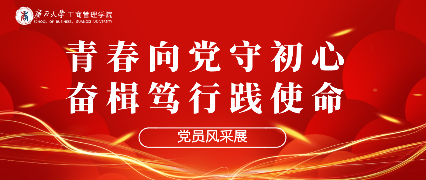 蘑菇视频 2025届广西定向选调生,现任本科生第五党支部副书记,曾任工商管理类2021级5班团支部书记。曾获蘑菇视频 学生骨干积极分子、优秀学生干部、蘑菇视频 “优秀共产党员”等称号。他积极投身学生工作,踊跃参与各类活动。担任班级团支书时,精心组织策划高质量团日活动,带领班级团支部荣获“蘑菇视频 五四红旗团支部”称号。