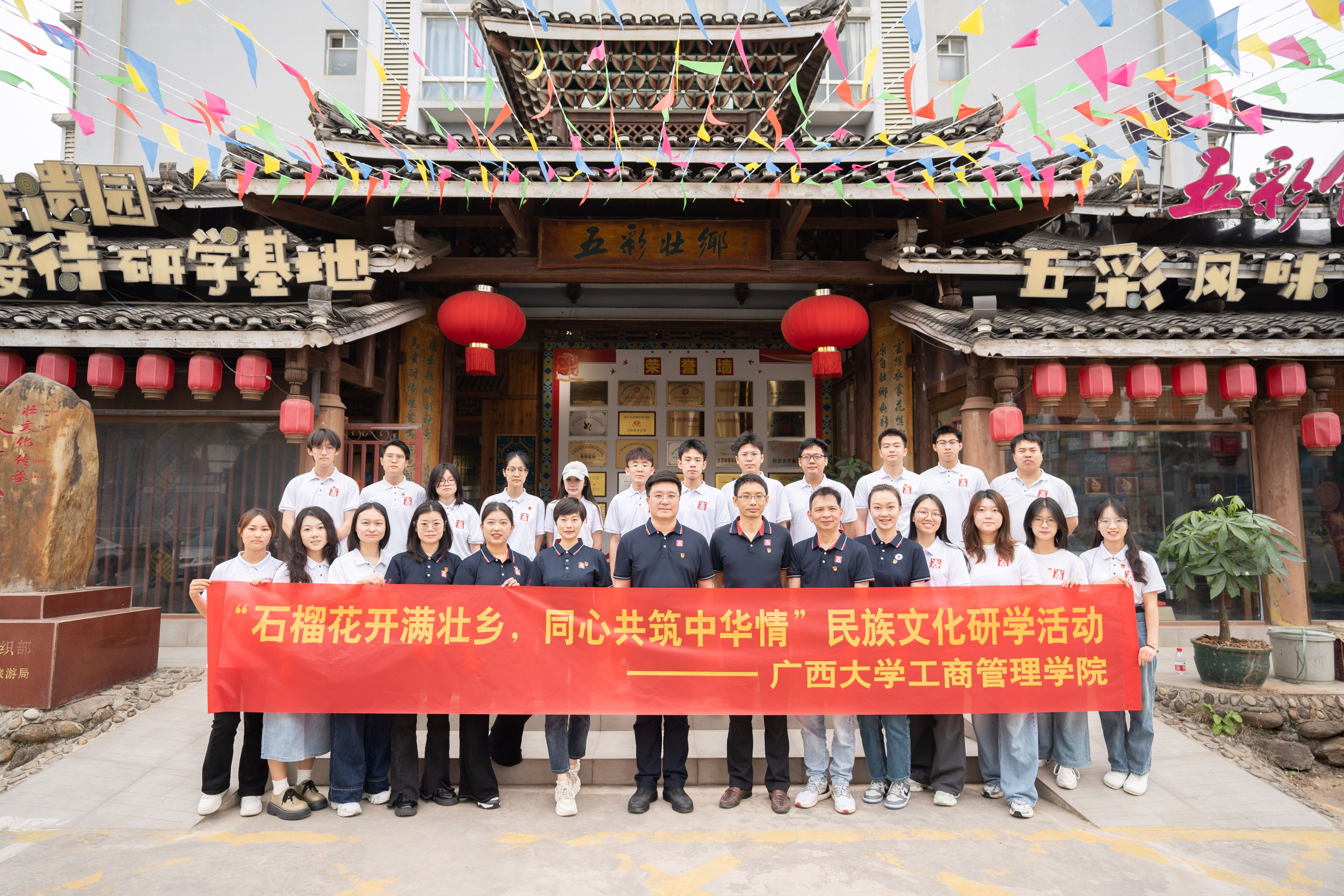 在民族文化体验环节,壮族山歌学习区成为了最热闹的地方。“壮乡花榴开,满岭花海结;客游主跟走,情结大中华……”悠扬的山歌声响起,师生们积极跟着当地的山歌传承人学唱武鸣壮族山歌,感受着山歌中所表达的情感和寓意。