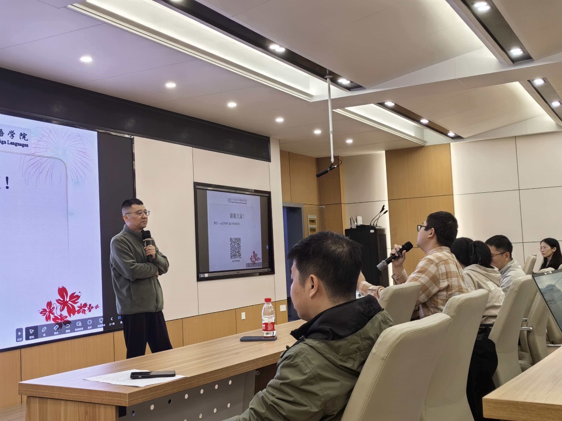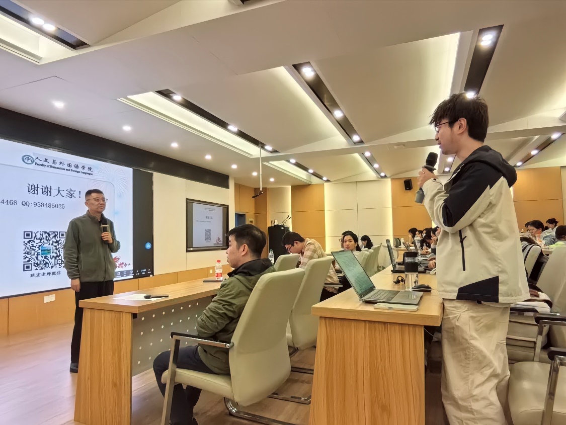 在互动交流环节,现场师生踊跃提问,围绕学术英语写作中常见的语法误区、论文表达优化技巧、国际期刊投稿语言适配等问题,与延宏教授展开面对面探讨。延宏教授结合自身丰富经验,针对每个问题逐一细致解答,既有具体案例示范,又有方法总结,现场交流氛围浓厚,师生均表示收获颇丰。随着互动环节的圆满收尾,第28期“名师课堂”在师生们的热烈掌声中落下帷幕。