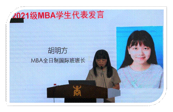 2021级全日制国际班胡明方同学作为老生代表发言,她向2022级新同学们分享了一年来求学的心得体会,并建议新生们要秉承创新的精神,积极探索、刻苦钻研,实事求是。2022级非全日制周末2班李骏翾同学作为新生代表向师长表示真诚的感谢,并对未来的学习生活充满期待。他认为没有激流就称不上勇进,没有山峰则谈不上攀登。只要迈开步,路就会在脚下铺开;只要扬起帆,风便会从八面涌来。既然选择了远方,便只顾风雨兼程;既然选择了西大,便只需一往无前。