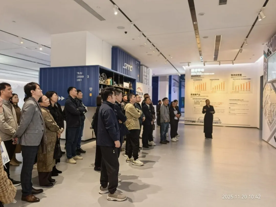 同学们一抵达集团,便受到了集团高层管理人员的热情接待。在展厅中,十几分钟的宣传短片清晰勾勒出北部湾港集团的发展轨迹:2007年整合三市码头资产应运而生,如今已成长为业务覆盖港口、物流、工贸、投资等多板块,辐射香港地区及新加坡、马来西亚等多个国家的综合性企业。二十余年砥砺前行,这家企业用实干书写了“向海图强”的壮阔篇章。讲解员重点介绍的物流变迁更令人瞩目:曾经西南地区货物出海需辗转绕行,如今依托西部陆海新通道,海铁联运高效衔接,大幅节省运输时间与成本,让“出海捷径”成为现实。