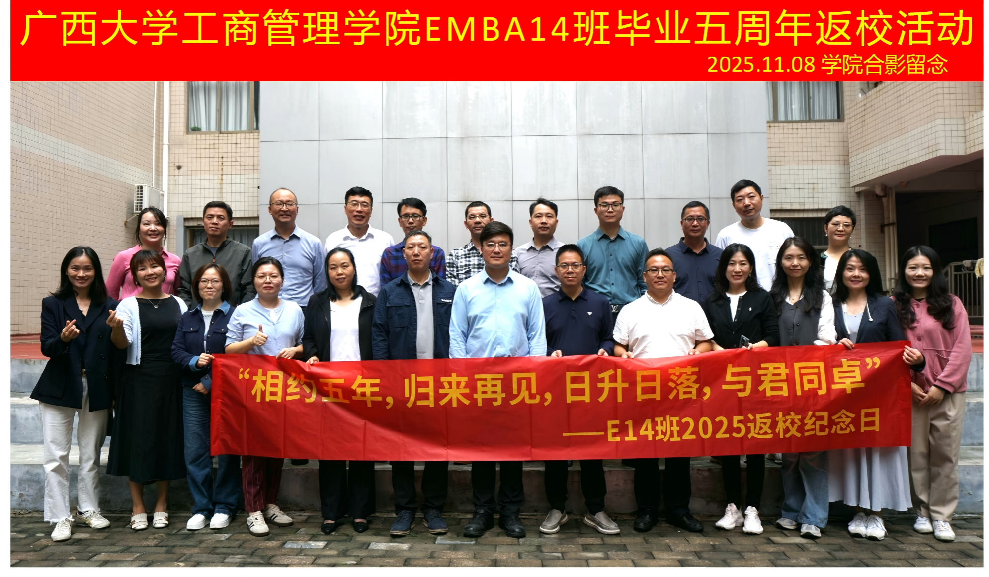 迎来了一批特殊的“家人”—EMBA14班的校友们,在毕业五周年的重要时刻重返母校,共赴一场“重温同窗谊,再启新篇章”的温情聚会。二十余位校友跨越山海,从全国各地奔赴而来,相聚蘑菇视频