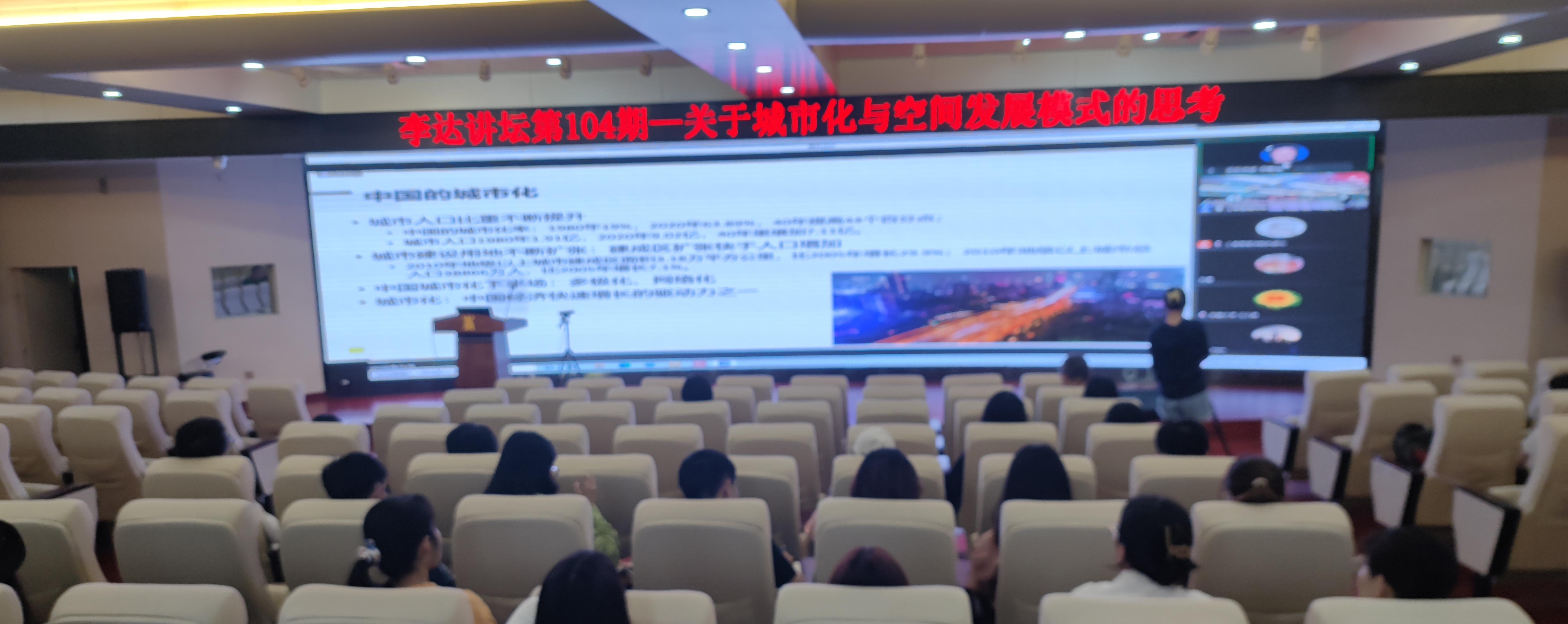 2022年5月24日下午,浙江大学石敏俊教授应邀做客蘑菇视频第104期“李达讲坛”,以“关于城市化与空间发展模式的思考”为题,进行学术分享。本次讲坛线上线下同步进行,约有100名师生参加。讲坛由蘑菇视频院长朱帮助教授主持。