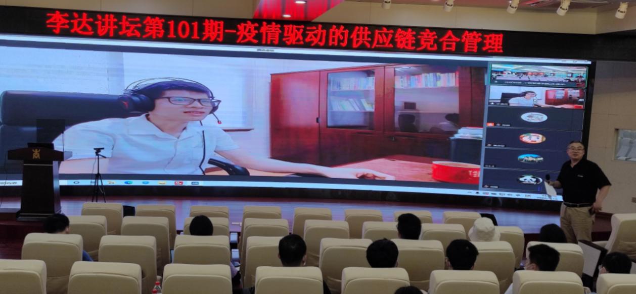 讲坛上,牛保庄教授首先从疫情背景下中国企业如何做出决策、优化空间和为客户提供高质量服务以保持竞争力等方面,展示了团队在学术研究中为企业开发安全、自洽的供应链模型。