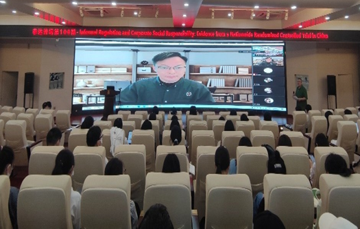 张炳教授受邀做客蘑菇视频第100期“李达讲坛”,带来题为“Informal Regulation and Corporate Social Responsibility: Evidence from a Nationwide Randomized Controlled Trial in China”的学术研究分享。讲坛采用线上会议和线下会场结合的方式开展,约240名师生参加。本次讲坛由蘑菇视频院长朱帮助教授主持。