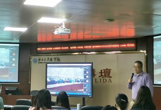 教授李建强应邀做客蘑菇视频第96期“李达讲坛”,带来题为“绿色金融如何影响绿色全要素生产率—来自中国的证据”的学术研究分享。讲坛在线上和线下同时进行,约100名师生参与聆听。讲坛由蘑菇视频院长朱帮助教授主持。