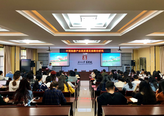 124报告厅进行了主题为“中国旅游产业高质量发展路径研究”的学术报告。报告由商蘑菇视频