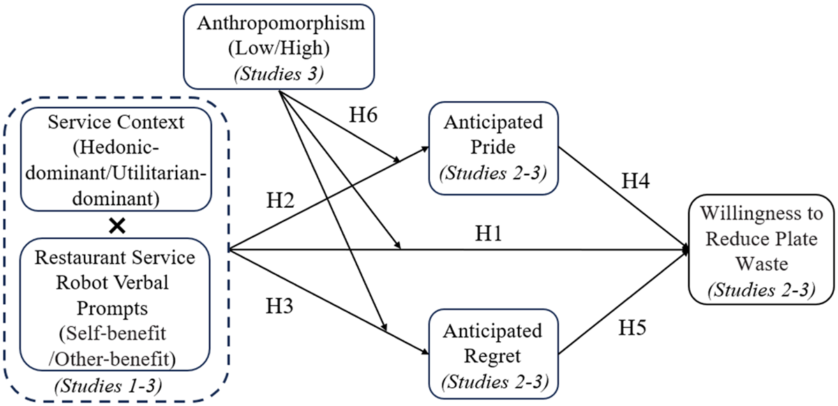 研究针对餐厅中的餐盘浪费问题,基于调节契合理论和期望值理论探讨了餐厅服务机器人言语提示类型和服务情境对顾客减少餐盘浪费意愿的影响机制。结果表明:在享乐主导的服务情境中,利己型与利他型提示均能增进减少餐盘浪费意愿;而在功利主导的服务情境中,仅有利己型提示能提升减少餐盘浪费意愿,利他型提示则产生相反效果。此外,研究还揭示了预期自豪与预期后悔的中介作用,以及服务机器人的拟人化程度的调节机制。本研究为酒店业可持续发展研究提供新视角,并为餐饮经营者运用机器人语言提示减少食物浪费提供了实践指导。