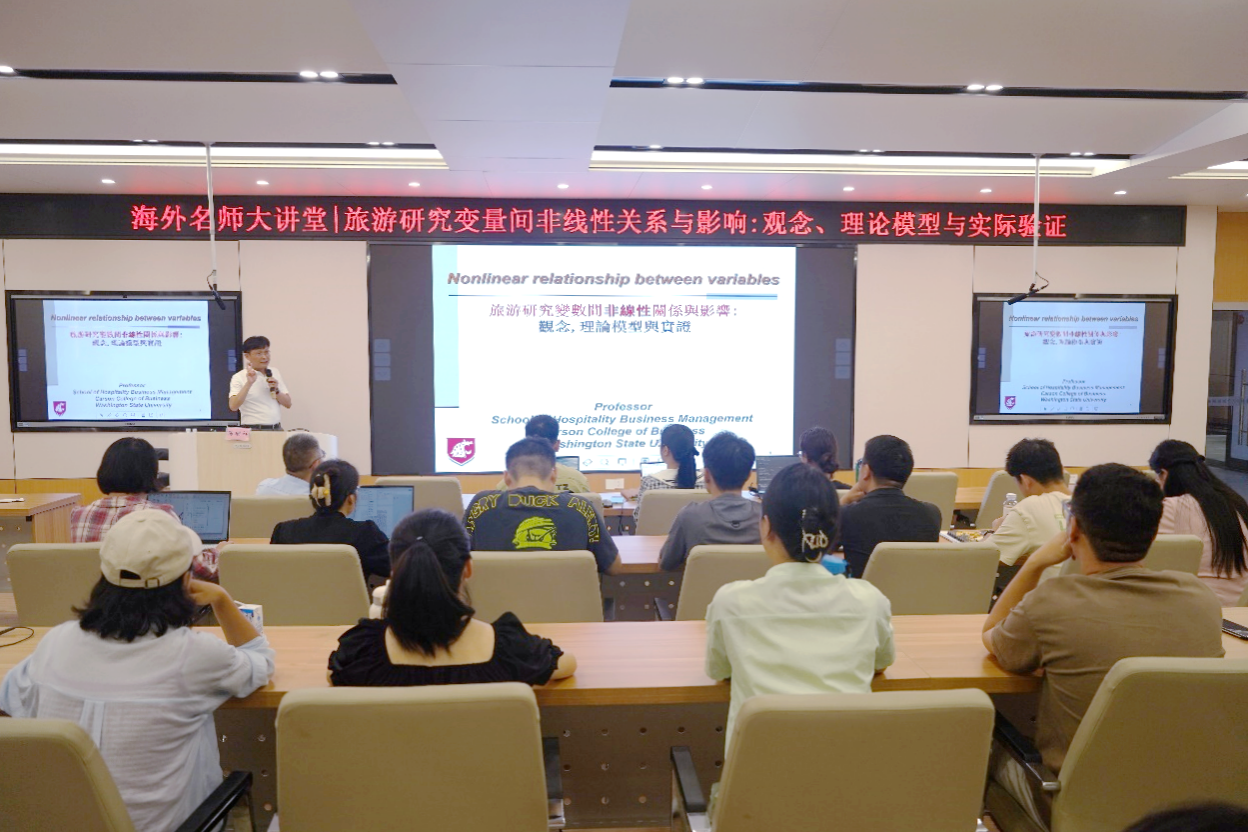 6月4日,美国华盛顿州立大学餐旅管理系陈明祥教授受邀做客蘑菇视频海外名师大讲堂,以“旅游研究变量间非线性和不对称关系与影响:观念,理论模型与实证”为题在蘑菇视频 122报告厅为蘑菇视频师生作学术报告。蘑菇视频 旅游管理系专任教师和部分研究生参加学习交流。